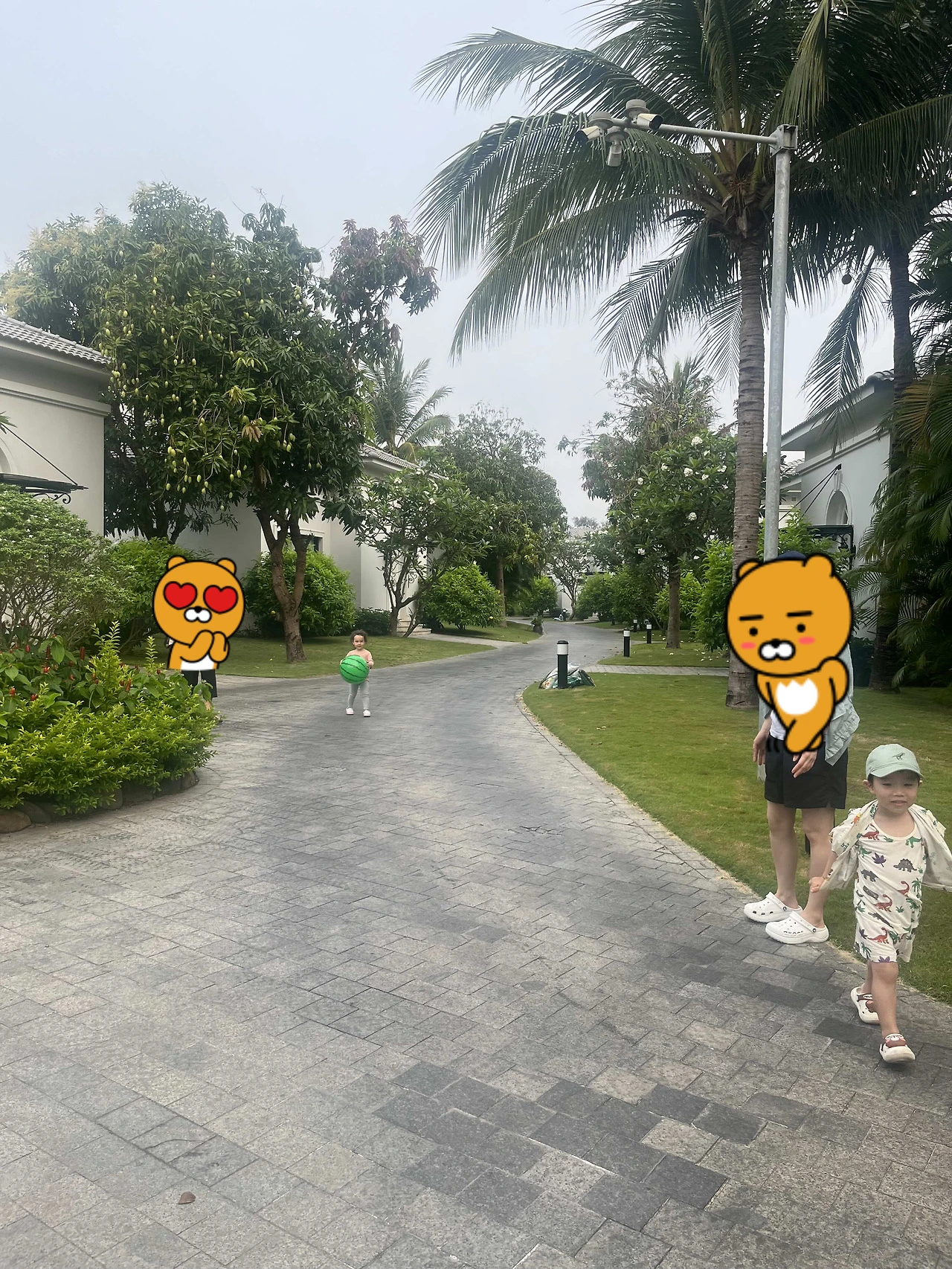할아버지 칠순 기념, 베트남 다낭 여행의 첫 아침. 시차 적응이 되지 않아 새벽에 깬 가족들은 조식을 먹기 전 리조트 산책을 한다.