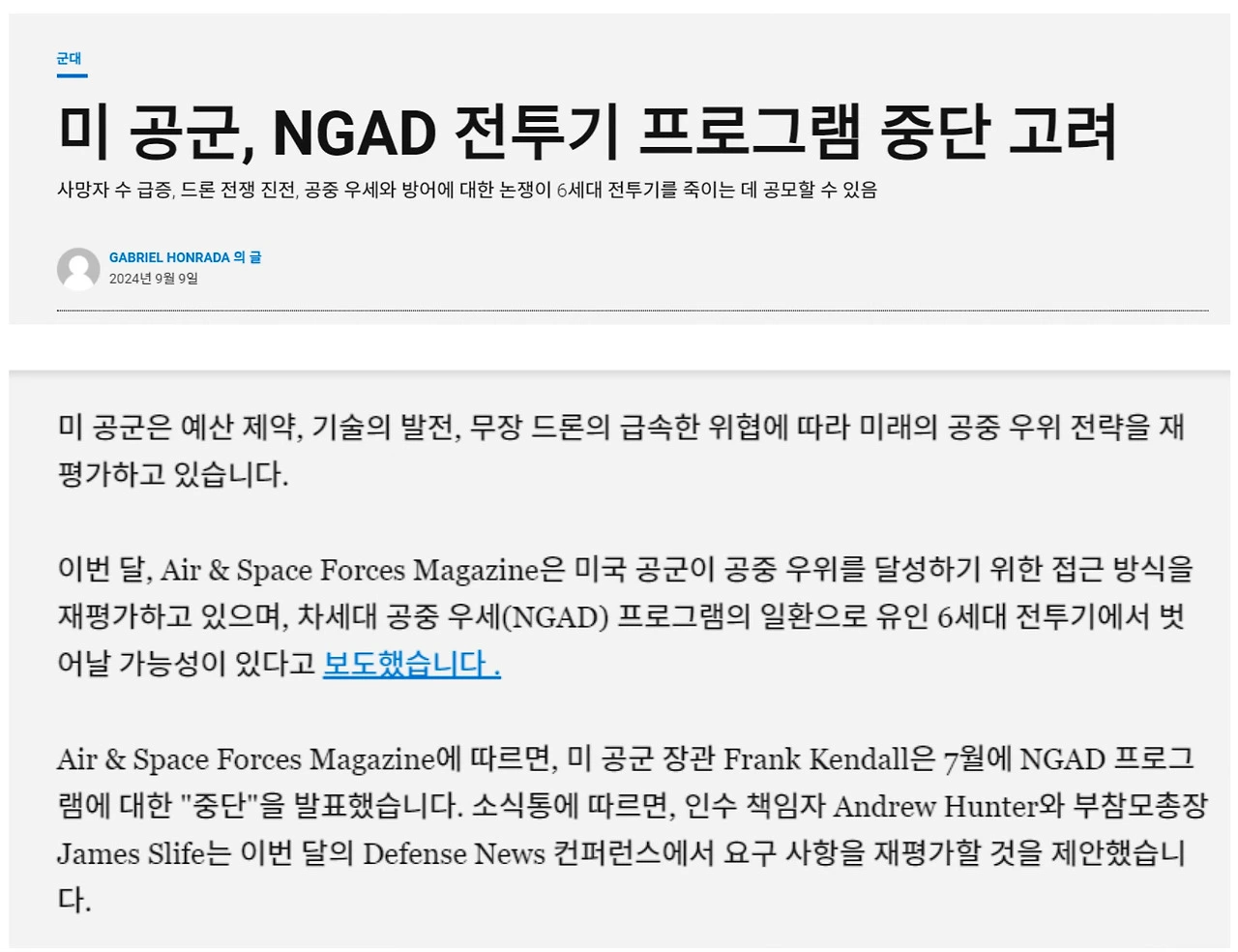 드론과 관련이 없다고는 하지만, 최근 미 공군은 차세대 최첨단 전투기인 6세대 전투기 프로그램을 일시 중단할 것을 고려 중이라고 한다. 비용이 많이 든다는 것이 중단의 이유로 추정되지만, 드론과 인공지능 기술 발전이 영향을 준 것이 아니냐는 의견이 뒤따른다. 인공지능이 탑재된 무인 전투기로 방향을 완전히 틀 수도 있다는 전망도 나오고 있다. 최근, 한국이 미국의 아파치 헬기를 추가 도입한다고 밝히자, 드론에 격추될 수 있다는 우려가 나오는 것도 우크라이나 전장에서 드론이 헬기 천적이었기 때문이다.