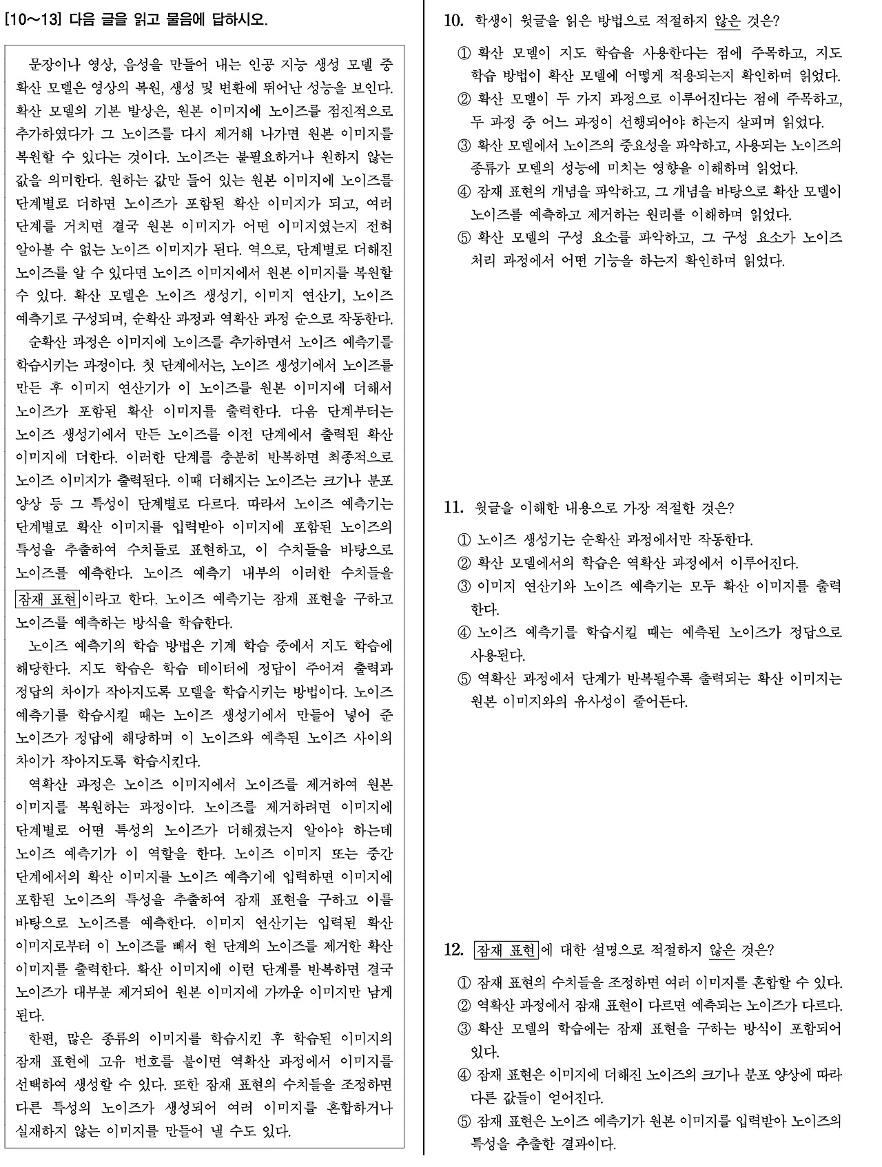 확산 모델(Diffusion Model)이 수능 국어 영역에 출제