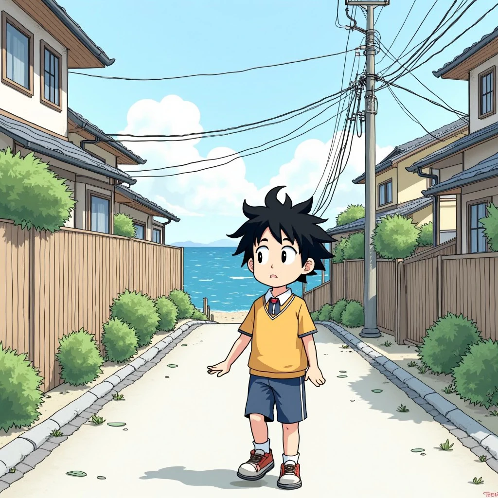 아래 이미지는 스테이블 디퓨전을 활용해서 직접 그린 그림입니다. 바다를 배경으로 하는 일본풍 마을에 있는 소년을 그려달라고 요청했는데요. 왼쪽 그림은 신카이 마코토 애니메이션 스타일로 그려달라고 추가 요청을 한 결과이며, 오른쪽 그림은 <닥터 슬럼프> 스타일로 그려달라고 요청한 결과입니다. 이미지 생성 인공지능의 실력이 놀랍지 않나요?