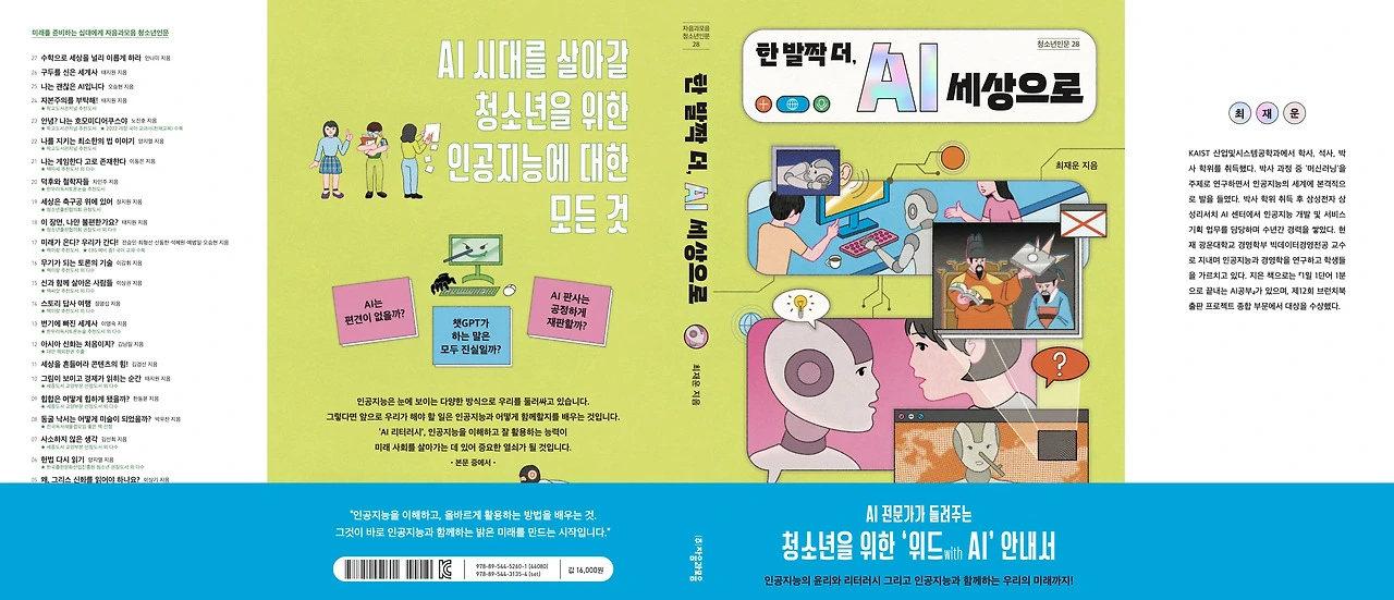 오는 4월 말, 드디어 두 번째 책이 세상에 나온다. 출판사에서 받은 띠지 표지 디자인을 보니, 이제 출간이 실감 난다. 이번 책인 <한 발짝 더, AI 세상으로>는 청소년들이 인공지능 시대를 현명하게 살아가기 위해 꼭 알아야 할 내용을 쉽고 재밌게 담았다.