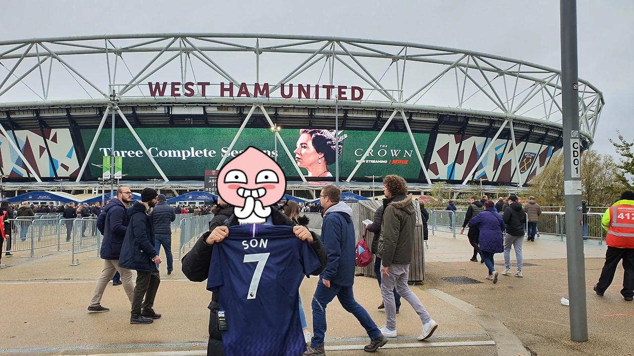 올림픽이 끝난 후, 런던 스타디움은 웨스트햄의 홈구장이 되었다. 런던 스타디움 가는 길에 접어드니 수많은 웨스트햄 팬들이 경기장으로 향하는 모습이 보인다. 그들 틈에 쓱 합류하여 마치 웨스트햄 팬인 양 경기장으로 향했지만 가방에는 손흥민 저지가 있었다.