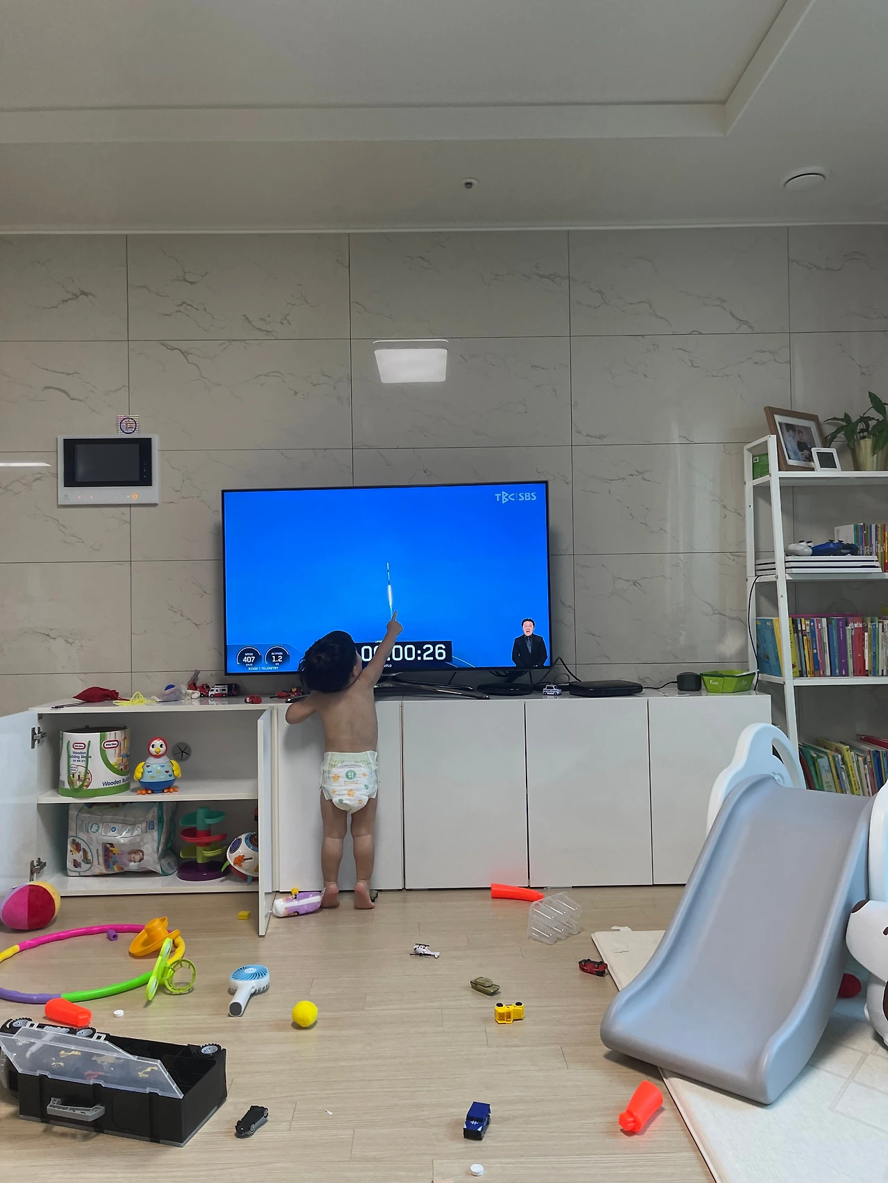 역시나 가장 좋아하는 것은 로켓이다. 로켓이 발사가 되는 장면은 아이가 보기에도 멋있나 보다. 아이가 유아일 때부터 절대적으로 지키는 원칙 중 하나가 TV를 최소한으로 보여주는 것이다. 평일에는 절대로 틀어주지 않고, 주말에도 저녁 시간에나 가끔 틀어준다. 그것도 애니메이션 같은 자극적인 콘텐츠는 피하면서. 평일 TV 시청의 유일한 예외는 국가적인 이벤트, 대한민국의 월드컵 경기나 롯데자이언츠의 포스트시즌 경기(이건 이뤄진 적이 없다) 등이다. 그리고 아빠가 좋아하는 이벤트. 누리호 발사 역시 평일 TV 시청 불가 원칙의 예외 중 하나였다. 평소 TV를 못 보다 누리호 발사 장면을 봐서인지 아이의 로켓 발사를 시청하는 리액션은 보통이 아니었다. 방방 뛰며 누리호 발사를 자축하는 우리 아들.