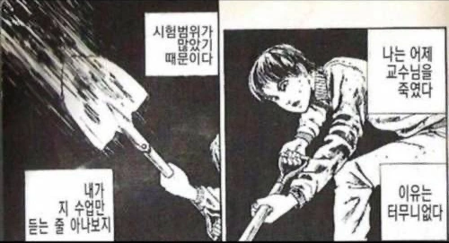 중간고사를 보는 모든 학생들이 선방하기를 응원하며, 누군가에게는 단순 웃짤이지만 누군가에게는 섬뜻하게 다가오는 짤을 하나 더 공유하며 글을 마친다. (오른쪽에서 왼쪽으로 읽으세요)