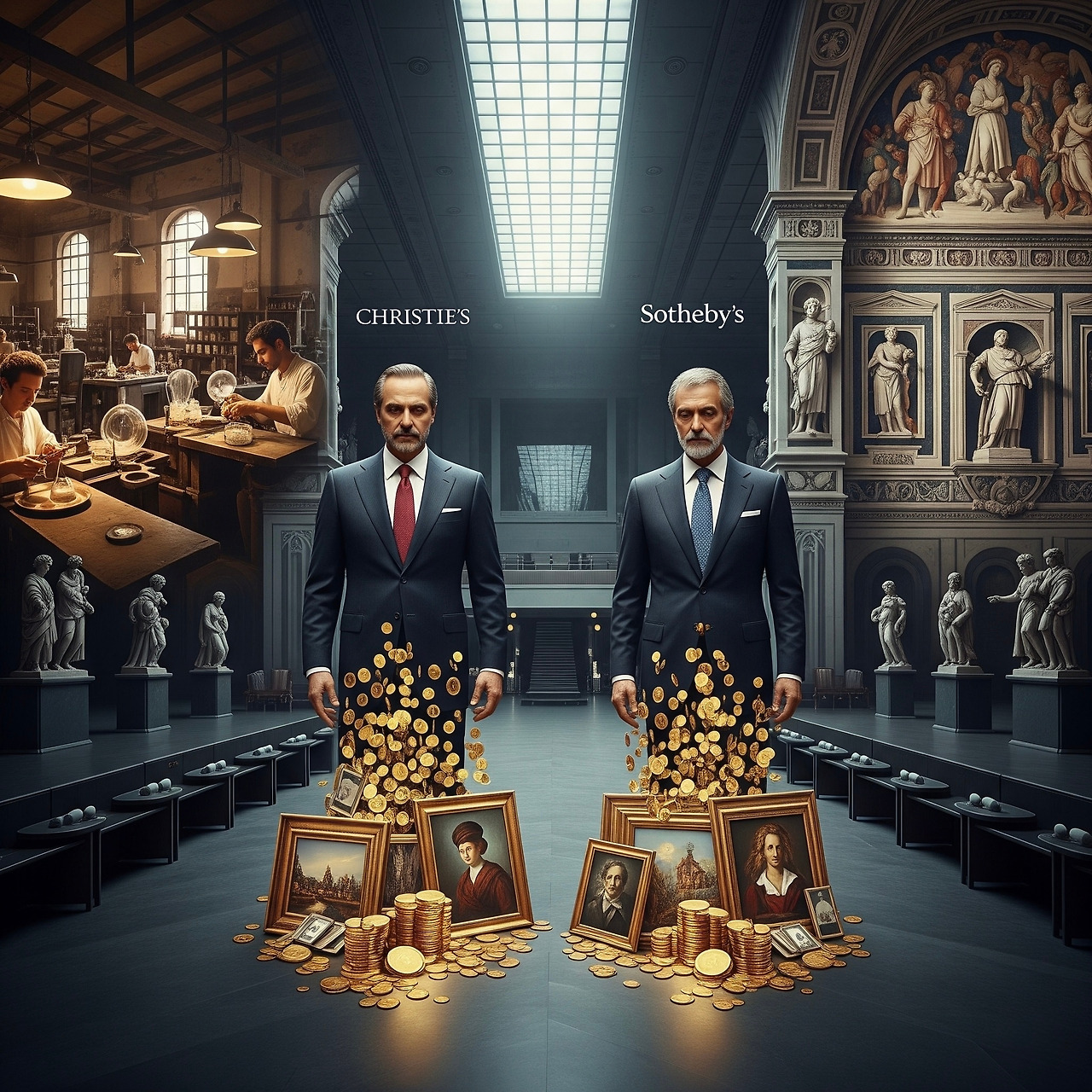 크리스티와 소더비는 여전히 전 세계 고급 미술품 경매 시장의 90% 이상을 장악하고 있습니다. 이러한 과점 구조는 1장의 무라노 유리공예 길드나 2장의 메디치 가문처럼, 소수의 사업자가 시장을 지배하며 가격과 거래 조건을 임의로 결정할 수 있는 환경을 조성합니다. 두 회사의 시장 지배력은 단순히 경매 서비스 제공을 넘어 작품의 진위 인증, 가치 평가, 시장 트렌드 설정에까지 영향을 미칩니다.