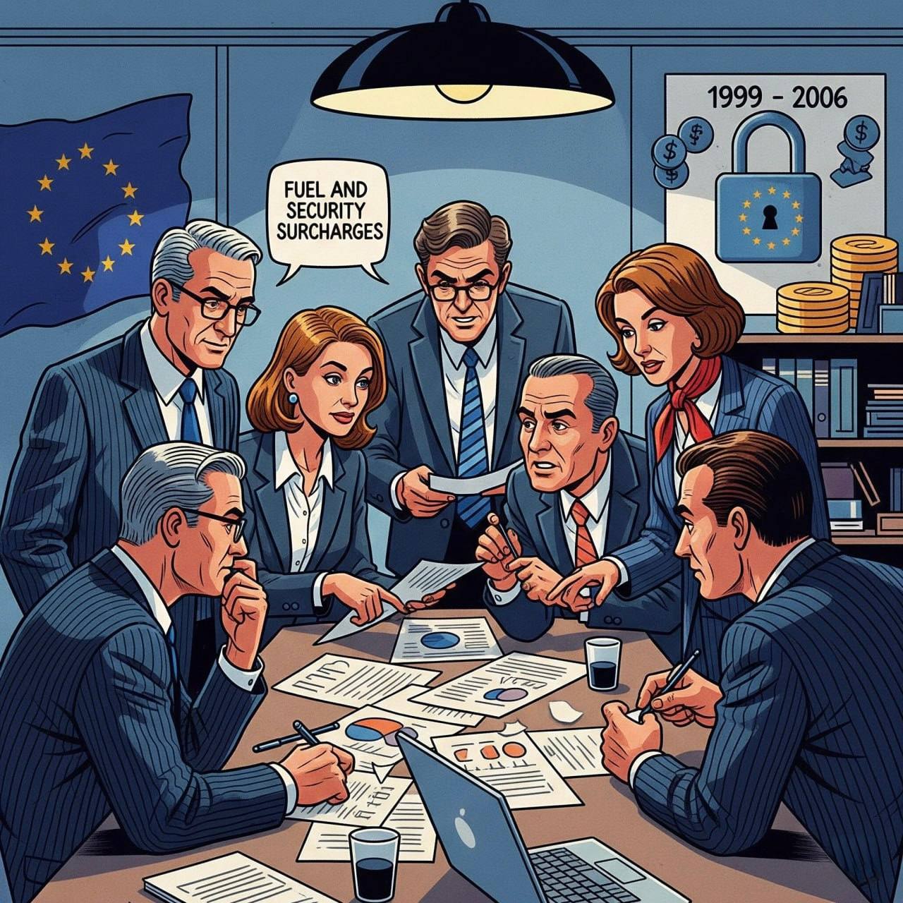 고대 그리스 연극계의 담합 양상은 현대의 유럽연합(EU) 항공 카르텔 사건과 놀라운 유사점을 보입니다. 유럽연합 집행위원회는 2010년과 2017년 두 차례에 걸쳐 에어캐나다(Air Canada), 에어프랑스(Air France), KLM, 마르티네어(Martinair), 브리티시 에어웨이즈(British Airways), 카르고룩스(Cargolux), 캐세이퍼시픽(Cathay Pacific), 일본항공(Japan Airlines), LAN 항공(현재 LATAM), 스칸디나비아 항공(Scandinavian Airlines), 싱가포르 항공(Singapore Airlines) 등 11개 항공사가 1999년부터 2006년까지 연료비 및 보안 할증료를 담합한 혐의로 총 7억 7,600만 유로의 과징금을 부과했습니다. 항공사들은 프랑크푸르트, 취리히, 홍콩 등지의 '가격 회의(price-fixing meetings)'와 이메일·팩스를 통해 유류할증료 최소 수준 합의, 보안할증료 도입 및 인상 시기 공조, 운송주선인에게 지급하던 커미션 일괄 중단 등을 결정했습니다. 심지어 '서클(circle)'이라 불리는 내부 연락망을 만들어 주 단위로 할증료 변동 계획을 공유하면서 시장이 요구하는 경쟁 가격을 선제적으로 차단했습니다. 이는 고대 그리스 작가들이 후원자들과 함께 심사 결과를 조작했던 것과 본질적으로 같은 행위입니다.