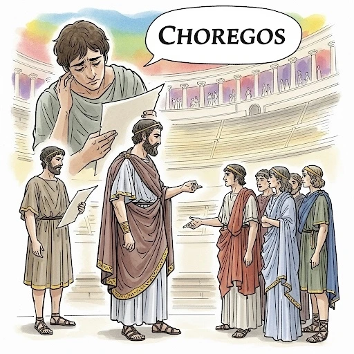 고대 그리스 연극계의 가장 큰 구조적 문제는 '코레고스(Choregos)' 시스템이었습니다. 코레고스는 돈 많은 후원자로서 합창대 편성, 의상 제작비 등 공연에 필요한 일체의 비용을 부담했습니다. 이들은 대부분 유력 가문 출신의 귀족들로, 정치적 야심을 가진 이들이 시민들에게 자신의 이름을 알리는 기회로 여겼습니다. 이 시스템은 2장에서 다룬 메디치 가문의 배타적 후원과 본질적으로 같은 구조였습니다. 코레고스들은 특정 작가와만 독점적 관계를 맺어 다른 후원자들의 접근을 차단했고, 이로 인해 재능 있는 신진 작가들은 중요한 기회에서 자연스럽게 배제되었습니다. 기원전 476년 테미스토클레스가 코레고스가 되어 프뤼니코스의 '포이니케의 여인들'을 후원한 사례는 정치적 목적과 예술 후원이 어떻게 결합되었는지를 보여주는 대표적 사례입니다.