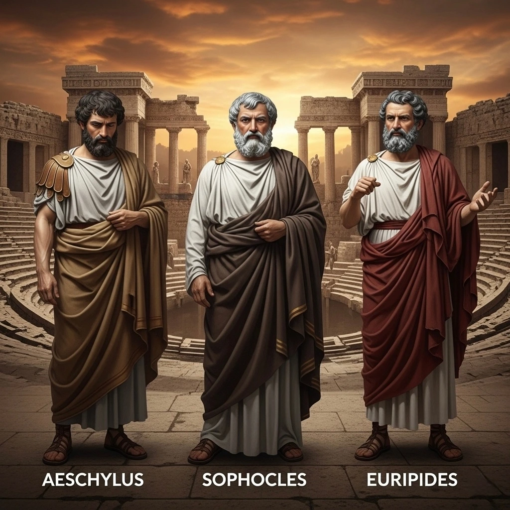 고대 그리스의 3대 비극작가인 아이스킬로스, 소포클레스, 에우리피데스 사이에도 미묘한 협력과 견제의 관계가 존재했습니다. 이들은 서로 영향을 주고받으며 그리스 신화 속 같은 소재를 다루면서도 때로는 경쟁을 제한하는 암묵적 합의를 형성하기도 했습니다.