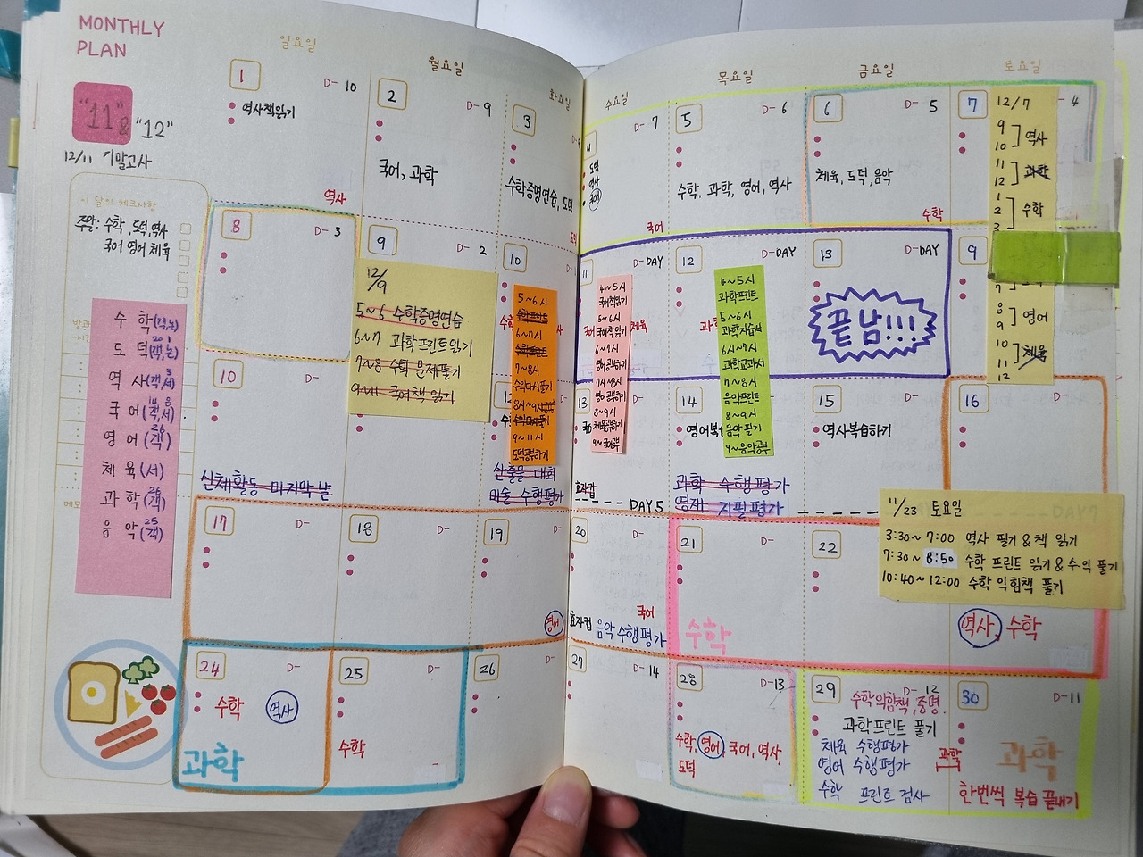 신났던 건지, 전교 1등을 한 바로 다음 시험기간에 내 스터디 플래너는 더 화려해졌다.