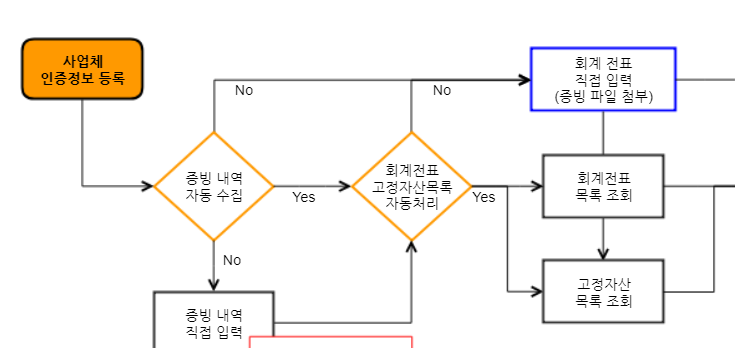 그래서 선택한 방법이 서비스 운영에 대한 큰 틀에 대한 설명을 먼저 하고 서비스의 핵심인 회계처리 관련 내용에 대해 마지막단계에서 플로우 차트로 설명하는 것이었다. 서비스 운영에 대한 정책 설명은 생각보다 어렵지 않았다. 다들 서비스에 대한 경험이 많은 편이었고, 서비스를 직접 처음부터 끝까지 운영해보신 분도 있었기 때문에 오히려 내가 생각하지 못했던 부분에 대해서 짚어 주시기도 하는 등 좋은 피드백이 많았다.