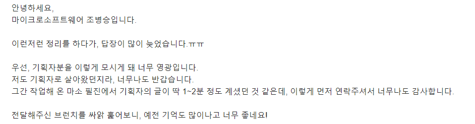 그래도 이렇게 초안을 보내고, 피드백을 받고, 글을 다시 수정하고 완성하여 완성본을 받는 일련의 과정들은 좋은 경험으로 남았다. 마이크로소프트웨어에 글을 기고하면서 글을 쓰는 것에 대한 자신감도 붙었고, 추가적인 활동을 진행할 때 조금 더 적극적으로 나설 수 있게 되었다. 다음에 기회가 된다면 한 번 더 기고하는데 도전해보고 싶다.
