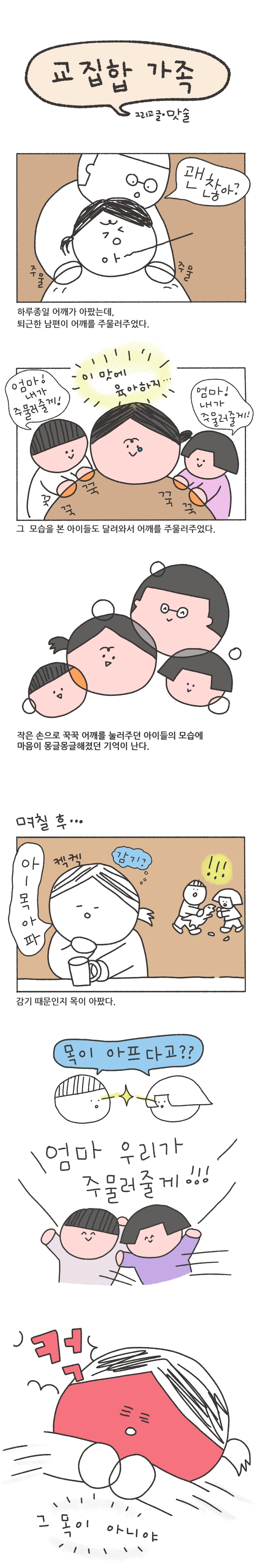 어깨 아프단 소리에 남편이 어깨를 주물러주었다. 그 모습을 가만히 지켜보던 아이들이 달려왔다!