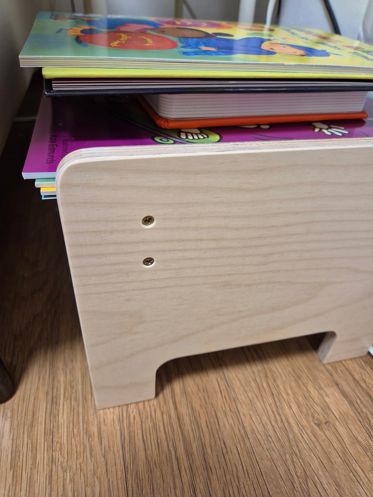 그래서 사두었지만 잊고 있던 새 몬테소리 스툴을 꺼냈다. 거실 한 켠에 이렇게 스툴을 두고 다음 날 읽을 책을 이렇게 준비해두고자 한다. 그리고 아기가 크면 책장에서 직접 뽑아 이 스툴에 올려두도록 하면 좋겠다.