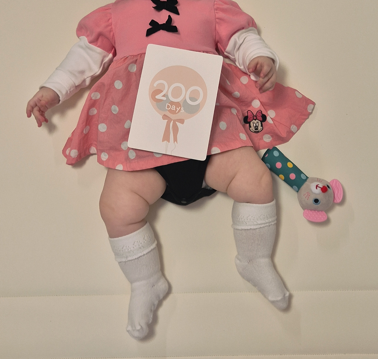 하지만 때 마침 조리원 동기언니가 디즈니 미니마우스 아기 옷을 선물로 주어, 그 옷을 입고 200일을 기념하기로 했다.