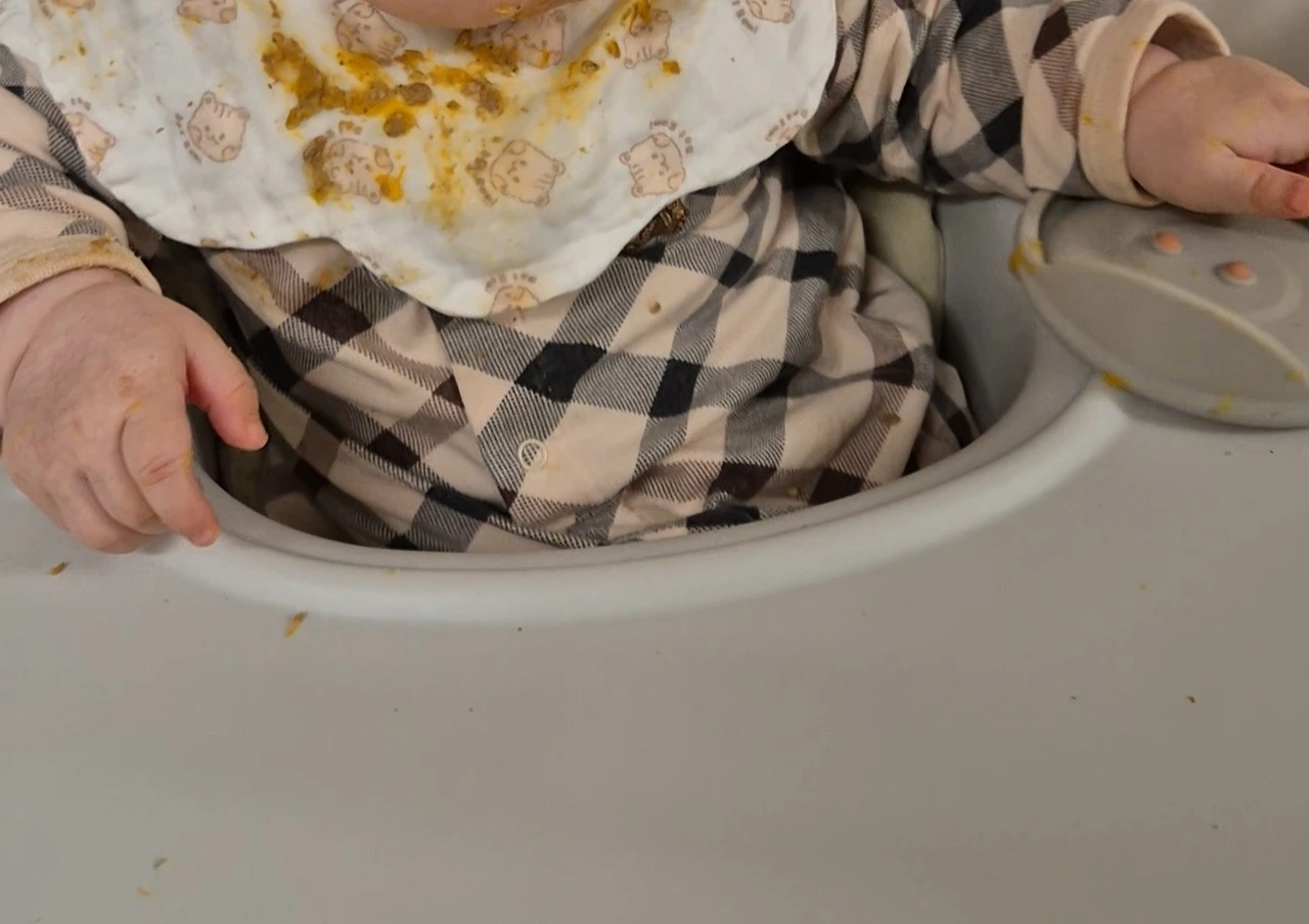 손과 옷에 이유식이 잔뜩 묻은 것은 물론이고, 바닥에도 소고기 부스러기가 나뒹군다. 먹는 건 30mL도 안 되는데 한번 먹고 나면 닦아야 할 곳이 많다. 아기 손, 얼굴, 하이체어, 그릇, 숟가락, 하이체어 매트를 닦고 옷도 빨아야 한다. 그러니 치우는 데도 20분은 우습게 지나간다.