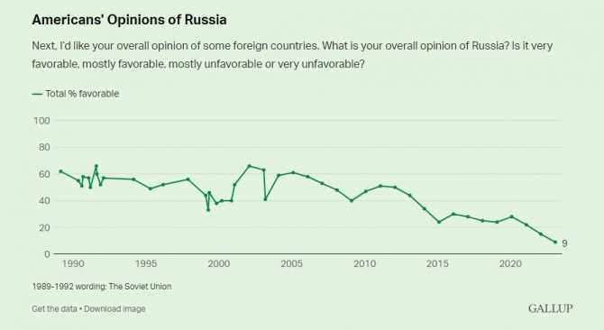 러시아의 우크라 침공이 있은 이후 미쿸에서 러시아/푸틴에 대한 호오를 조사해 보면 정말 처참한 수준으로 나온다. 사실상 주적이라 볼 만한 수준이다. 하지만 미쿸 대안우파 지도자들은 친러 행보를 포기하지 않는다.