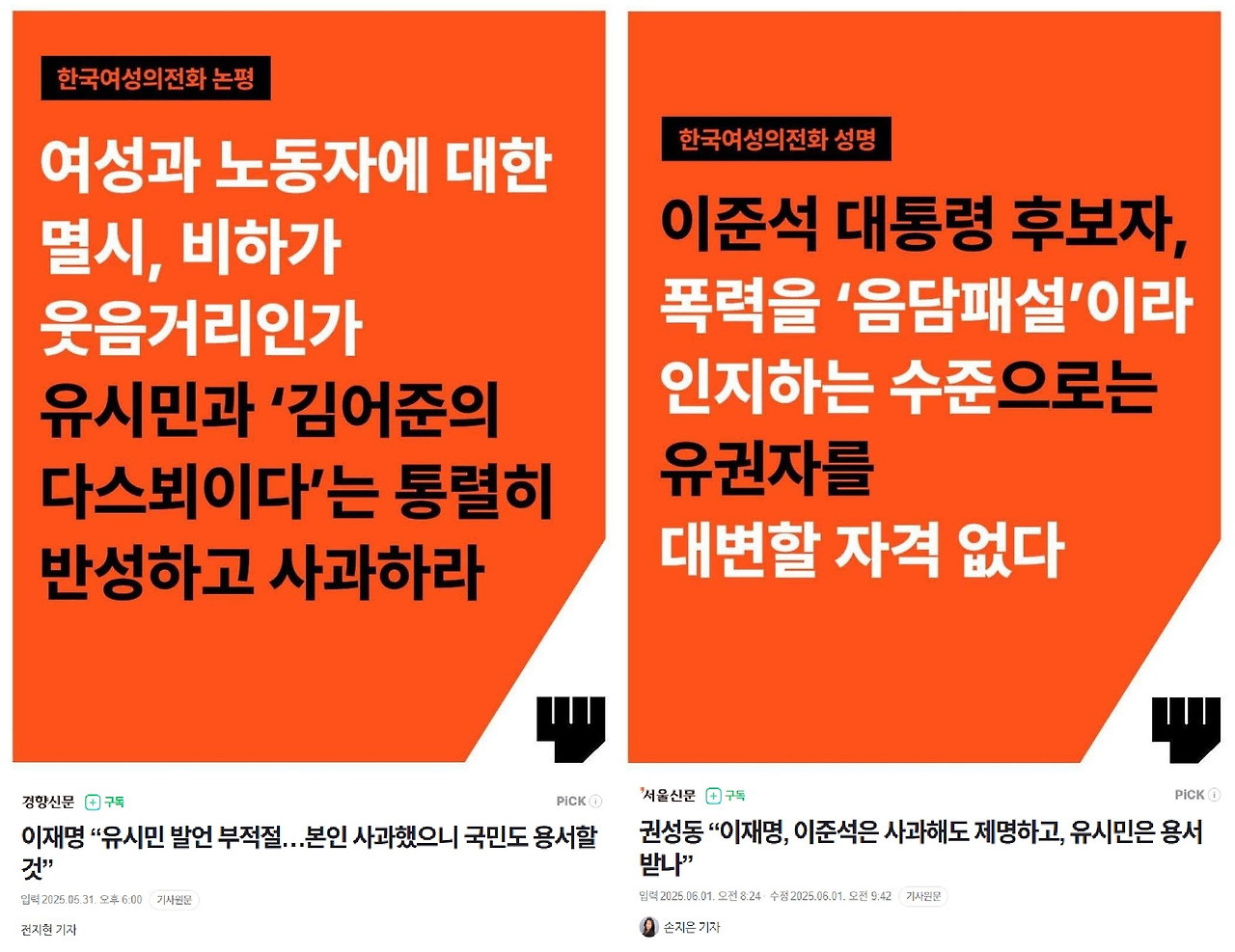 여성계 부둥부둥 → 칼날 강화 → 민주진영 자해 루프.