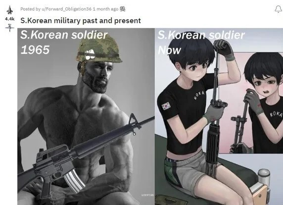 오늘날 젊은 남성들의 군 기피 풍조는 비단 독일이나 한국에서 만의 문제가 아니며 제1 세계에 광범위하게 퍼져있는 흔한 풍조이기도 하다. 제1 세계의 에겐에겐으로 떡칠된 세미보추 2030 남성들은 전쟁 포성 피 죽음 이런 걸 모니터 밖 현생으로 마주하길 원치 않는 것이다.(문명 이래 냉전시기까지 선대 남성들이 어떻게 살아왔는지를 보면, 지금 우리는 부정할 수 없이 에겐 떡칠 세미보추화 된 거 맞다.)