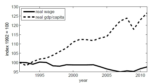 신자유주의 경제질서가 일반 노동계층 삶의 질 향상에 별 다른 기여를 하지 못함이 입증되자 시장 쟁이들은 어째서 그들의 전매특허인 부자감세, 규제철폐, 쉬운해고가 일반 대중의 경제 수준을 높여주지 못했는지에 대해 어떤 식으로 건 변명을 해야 할 처지에 놓이게 된다. 물론 '좌파들'은 늘 그러했듯이 시장경제 그 자체의 모순을 물고 늘어졌지만 그건 시장쟁이들이 차용할 수 있는 형질의 것이 아니었다.