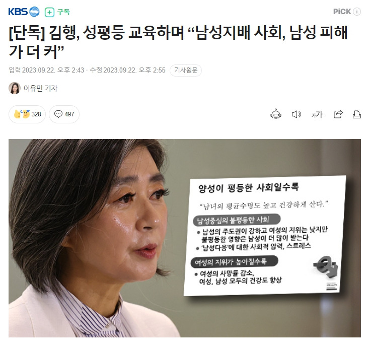 막말로 지금 여가부 장관 됐다는 김행이 한 발언들 보면, 우리 쪽에서 긍정적으로 볼 만한 부분들 많아. 그래서 "왜 남자 편 들어주냐?" 이러면서 여성계로부터 신나게 두들겨 맞는 중이다. 그런데 지금 그 반페미라는 작자들은 김행이가 왕년에 이준석이랑 사이가 나빴네 악연이 있네 어쩌고 떠드시느라 바쁘더라?