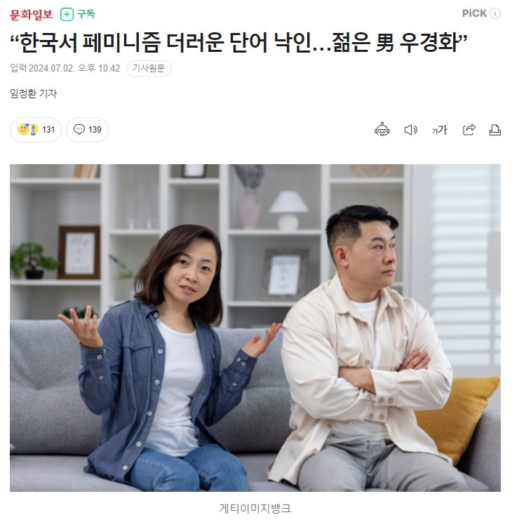 며칠 된 기사고, 사실 우리에게 특별할 것도 없이 익숙할 이 논조는 우리의 젠더갈등 현황의 일면을 보여주고 있다.
