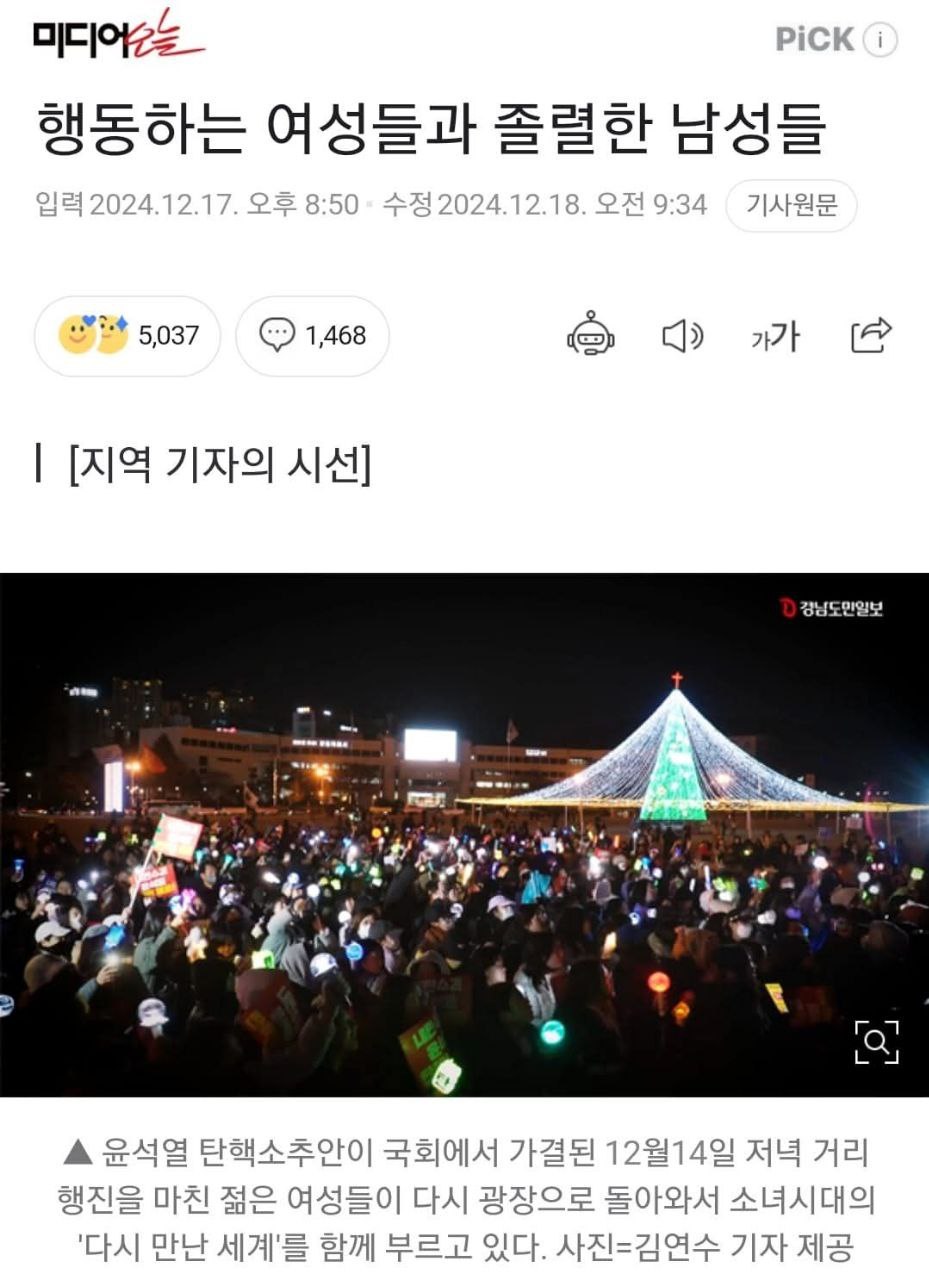 그래서 지금 "시위 현장엔 오직 이대녀와 오대남만" 이런 말이 나오는 게 민주진보 입장에서 정말 안 좋다는 것이다. 이들은 전통적인 민주진보진영의 주축이며, 현장에 이들만 나오고 있다는 건 이번 탄핵정국이 일전 최순실정국 때와는 다르게 우익우파의 지지가 일절 없이 전적으로 민주진보진영만의 파티가 되고 있다는 뜻이니까. 때문에 탄핵 주도자들 입장에선 설령 '이대녀와 오대남만' 나오고 있는 게 현실이라 하더라도 프로파간다 차원에서 일부러라도 이를 감춰야 할 판국인 건데, 실상은 페미들에게 끌려다니면서 지금 시위 현장에 민주진보 지지층인 이대녀와 오대남'만' 존재한다고 동네방네 광고를 내지 못해서 안달들이다. 젊은 남자들은 나오지 말라고 아주 고사를 지내고들 자빠졌다.