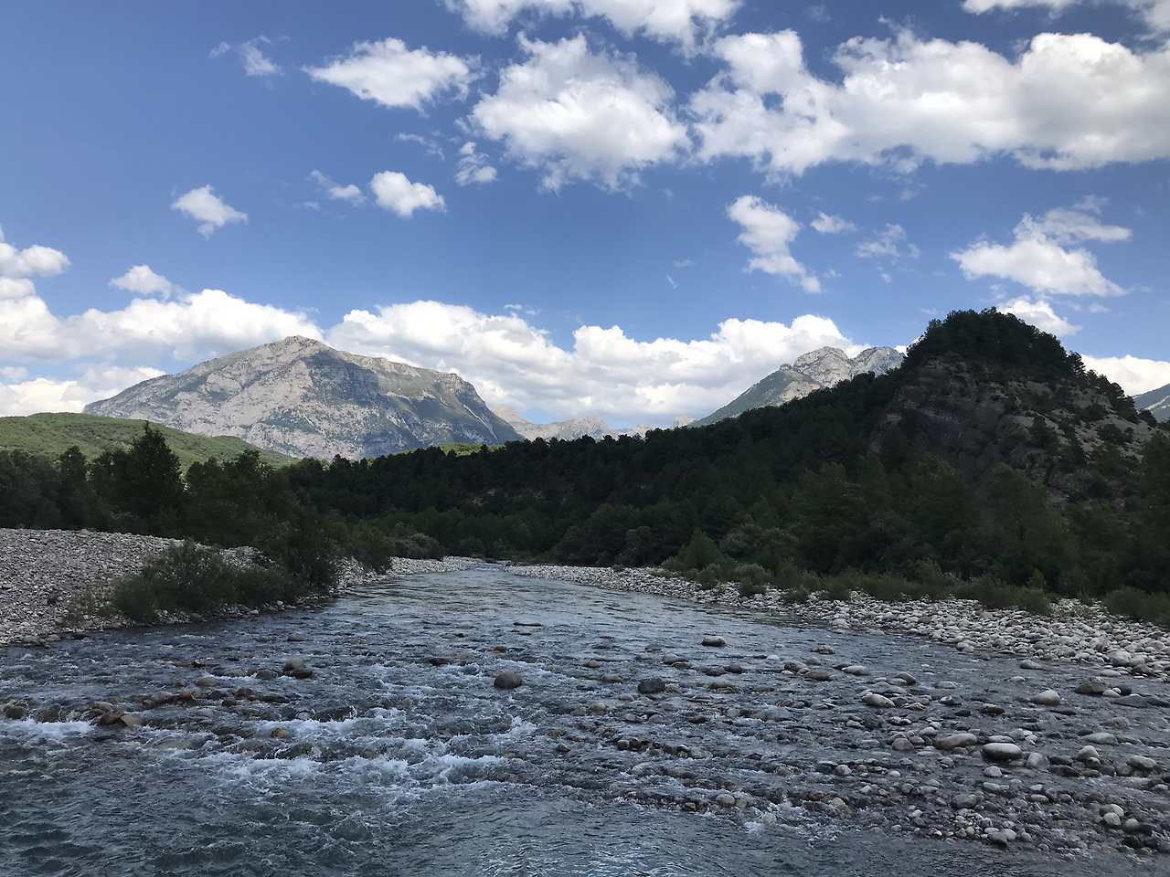 물가가 보여 잠시 차를 세웠다. 자갈로 이루어진 잔잔한 개울인 줄 알았는데 근처에 댐이 있는지 방류 시 수위가 급격히 높아진다는 경고문이 붙어있다. 멀리 보이는 봉우리가 시원하다. 이제 곧 국경이다.