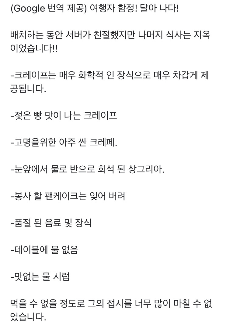 하지만, 구글 리뷰에 별이 2.4점인걸 보곤 정신이 번쩍 들었다. 리뷰수 54개인데... 주욱 훑어보니 여행자의 함정, 달아나?