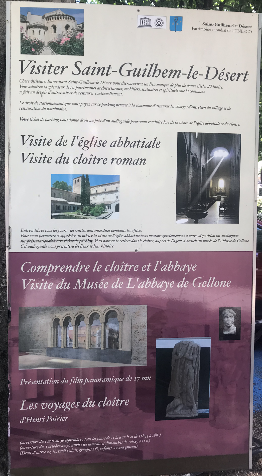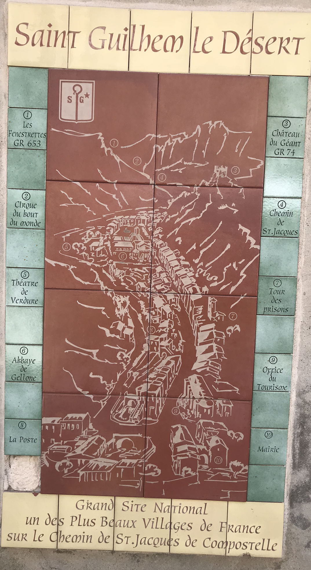 유네스코 문화유산인 중세 마을 생 길렁 르 데세흐.(Saint-Guilhem-le-Désert, 귀엠 으로 읽기도 한다고. 서양 이름 중 기욤 이란 이름의 기원이 되는 성인)