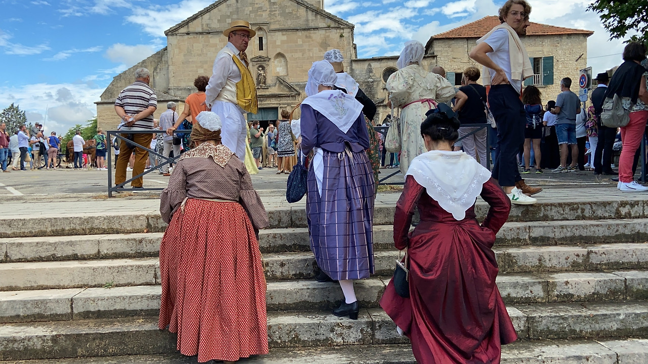 음악을 연주하며 교회 안으로 전통옷을 입은 사람들이 입장하는 것까지 보았건만, 어서 차로 돌아가자는 동행자들의 성화에 못 이겨 발길을 돌렸다. 나중에 찾아보니 7월에 열린다는 아를 전통 축제(Les Fêtes d'Arles)의 한 모습이었던 것 같다. 함께 사진도 스스럼없이 찍어준다고 하는데, 수줍게 멀리서 사진만 찍었다 싶다.