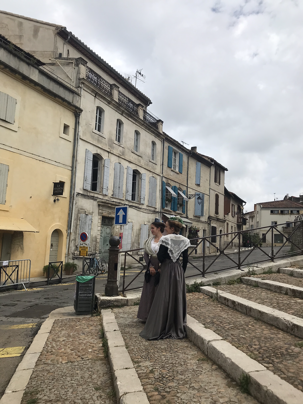 새틴으로 만들어진 색색의 드레스에 새하얀 에이프런을 두르고, 보닛을 쓴 여성들이 마치 고흐의 그림 안에서 바로 튀어나와 움직이는 것 같은 착각을 부른다. 아를의 여인의 실사판을 보고 있는 것이다!