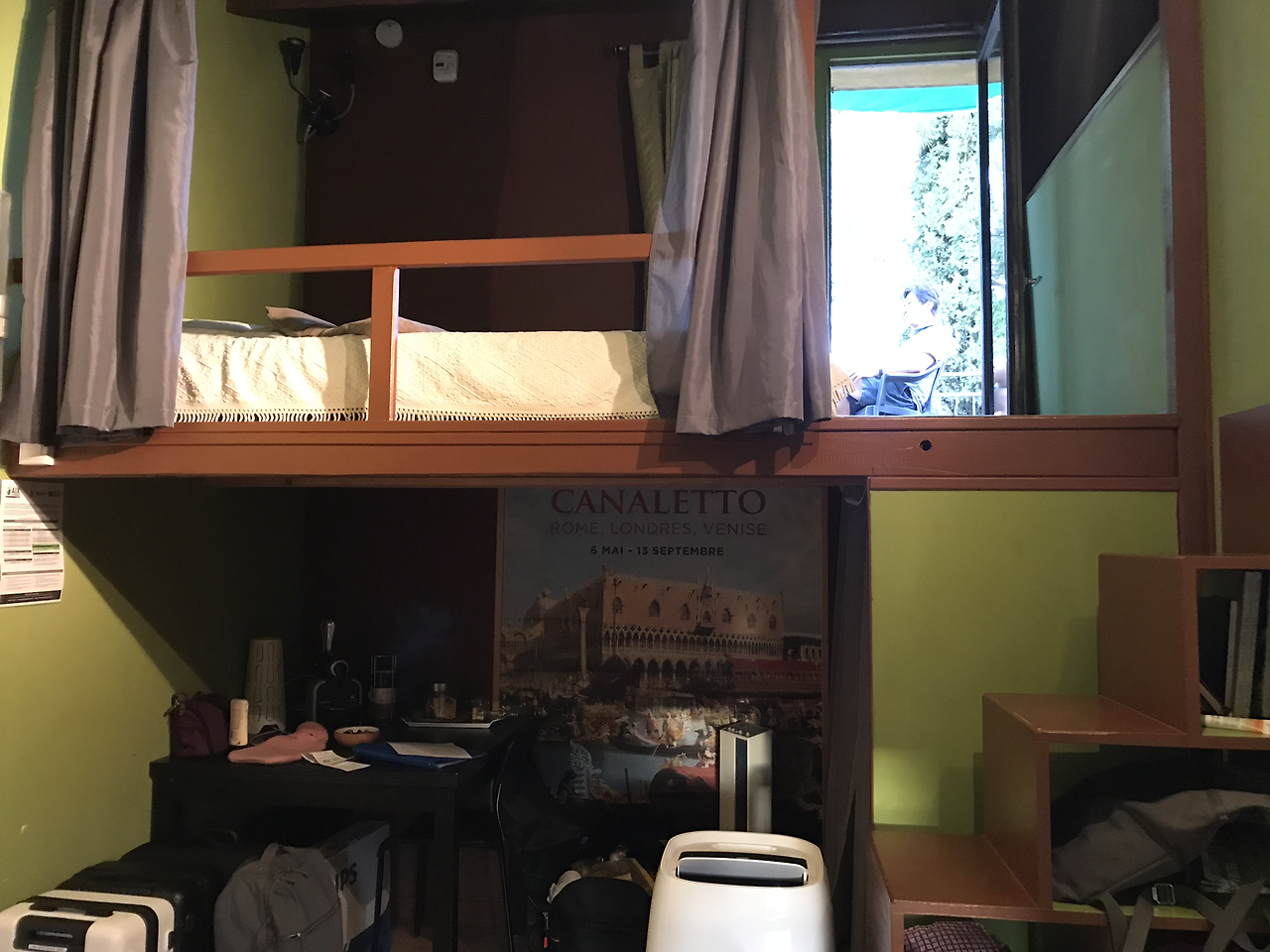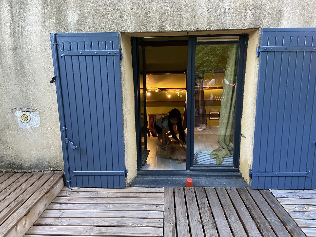 녹음이 우거진 전형적인 프로방스식 시골 주택. 거기서 당장 빨강머리 앤이 고개를 내밀 것만 같은 나무 덧문이 달린 작은 방이 우리가 이틀간 묵을 곳이다. 복층구조로 되어 있는 방의 2층엔 매트리스가 깔려 있고 아래층엔 작은 부엌과 냉장고, 화장실과 침대가 있다.