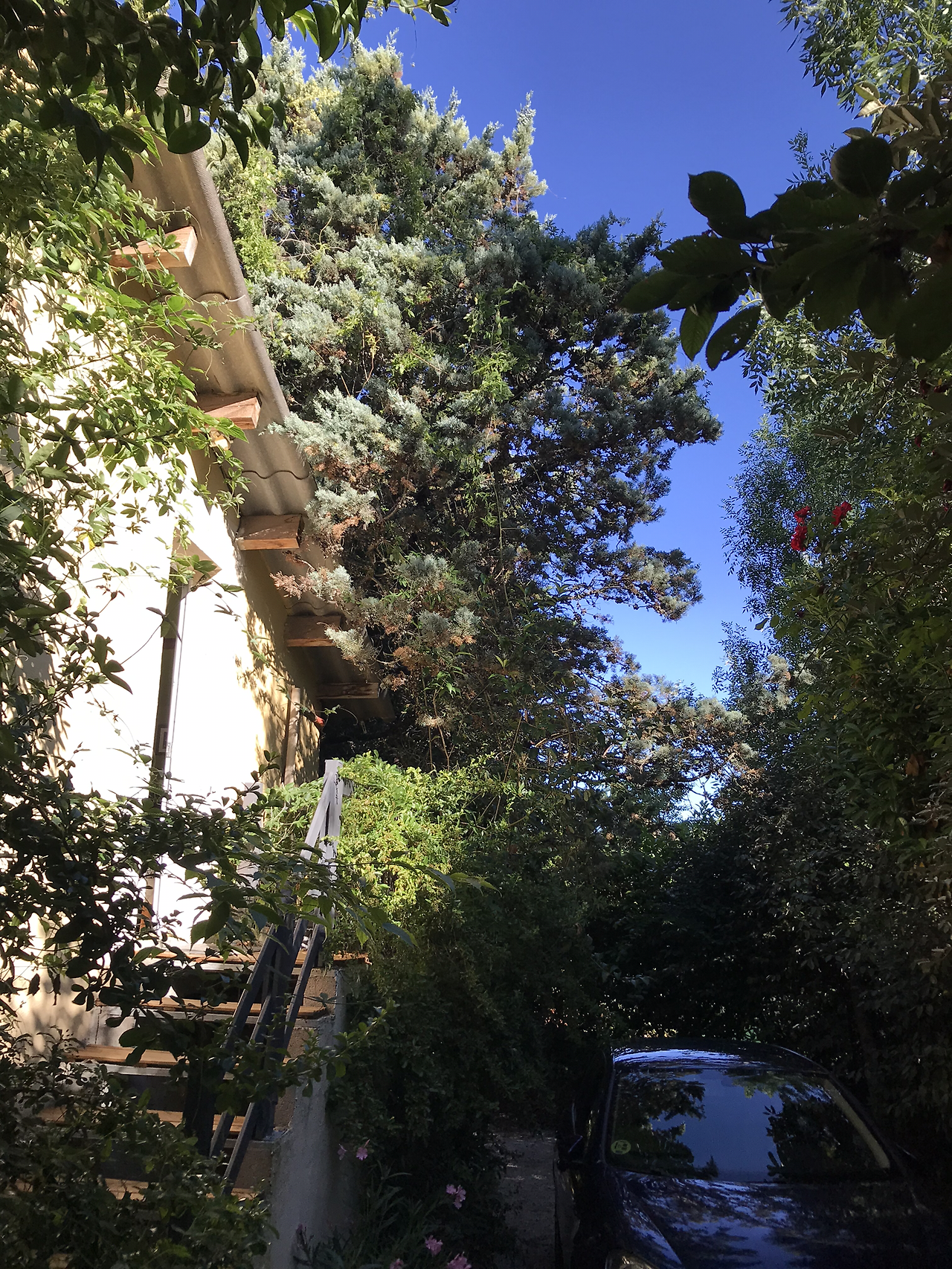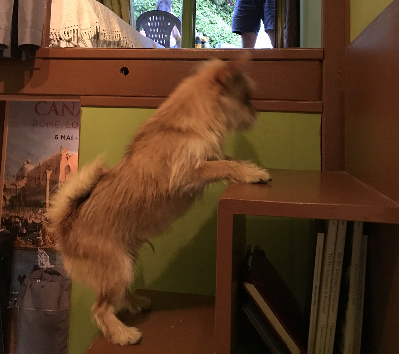 좋게 말하면 매우 아늑하고, 현실적으로는 네 가족+한 마리가 지내기엔 비좁은 방이지만 다행히 이층을 통해 지붕이 보이는 테라스로 나갈 수 있어 숨통이 트였다. 코코는 주변의 나무속을 뛰어다니며 그저 신났다. 주인은 웰시코기 한 마리와 코카 스파니엘 한 마리를 키우고 있었는데 방방 뛰는 어린 코코가 그다지 미덥지 않은지 두 개를 데리고 집안에 탕 가둬 버렸다.