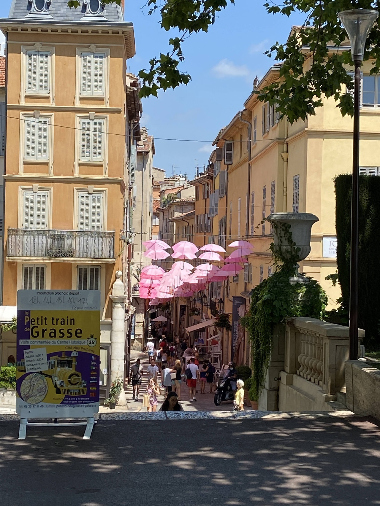 오렌지빛이 감도는 도시의 골목골목을 노란 쁘띠 트레인을 타고 돌아본다. 향기에 관한 한 과연 성지인 곳답게 눈길 닿는 어디에나 향수나 비누 가게가 있다. 핑크빛 우산 장식을 통과한 빛이 바람에 맞춰 도시의 색감을 이리저리 바꿔주자 보이진 않아도 오렌지 꽃과 노란 재스민, 다채로운 분홍색의 들장미들 안에 들어와 있는 듯한 느낌이 든다.