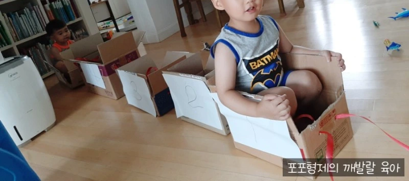이 때는 숫자를 잘 쓸 줄 몰라 직접 써 보게 하여 기차를 만들었다. 숫자를 써서 상자에 하나씩 붙이고 순서대로 연결해 주어 숫자기차 만들기를 완성했다. 장난감도 태워보고 직접 타 보기도 했다. 집에서 끌고 다니며 바빴던 기억이 있다. 재미있었는지 다음에 또 숫자기차 만들기 하자고 하던 아이들이었다.