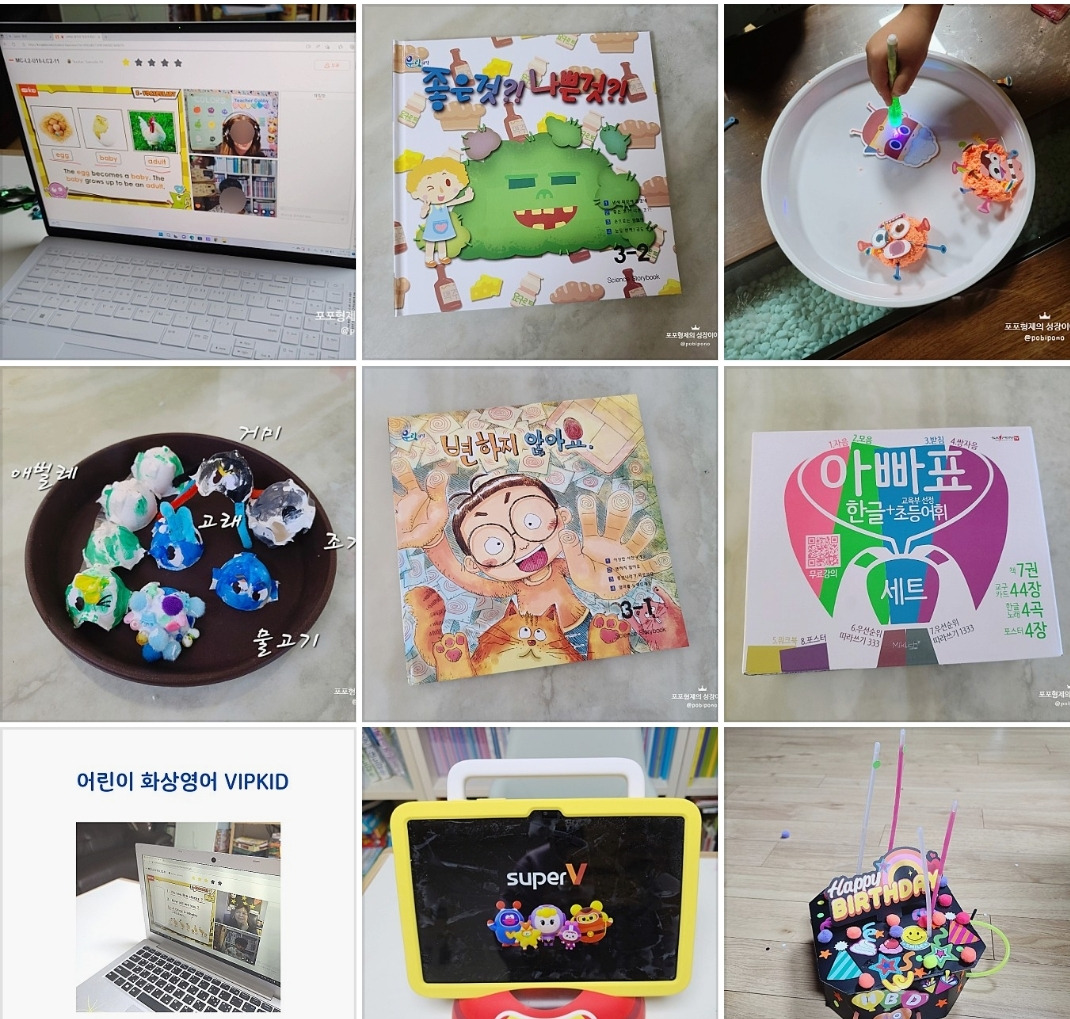블로그를 하다 보니 좋은 점이 인스타와 블로그 채널 두 개를 운영한다는 자체로도 여러 체험단에 당첨이 잘 되었다. 내가 글을 써서 아이가 무료로 다양한 체험을 하니 이것만으로도 꽤 뿌듯하고 보람이 있었다. 온라인영어프로그램도 하고, 교구도 받고, 다양한 놀이키트도 아이와 해 보았다. 전업주부지만 이렇게 소소하게 상품으로 돈을 번다고 생각하니 기분도 좋았다.