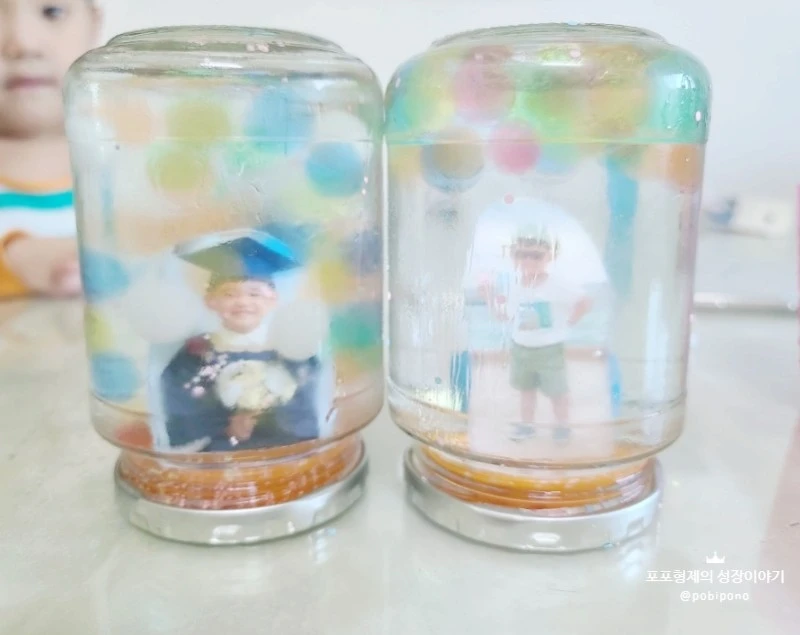 독후활동으로 진짜 스노볼을 만들어 보았다. 정제수, 글리세린, 잼통, 글리터가 준비물이다.