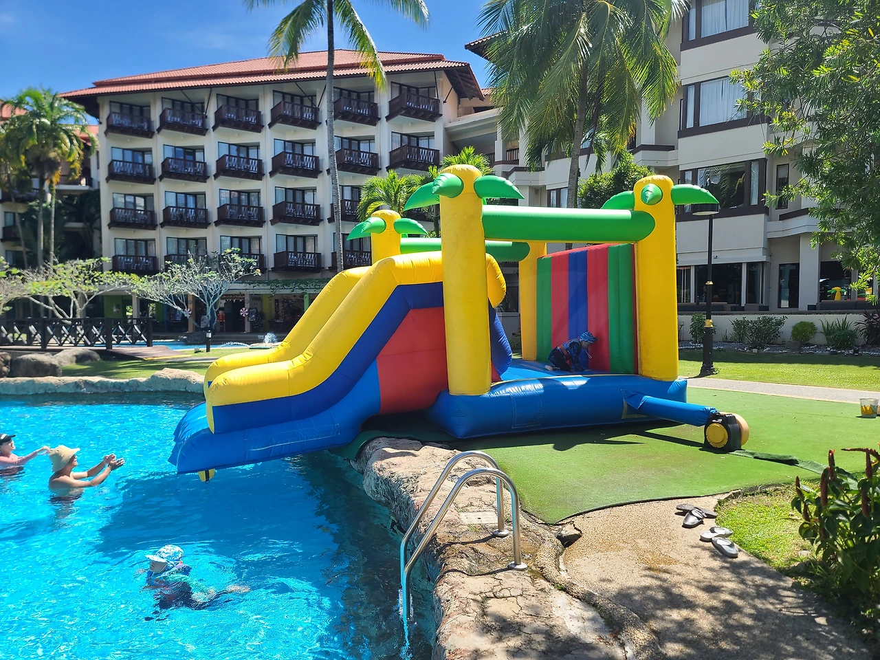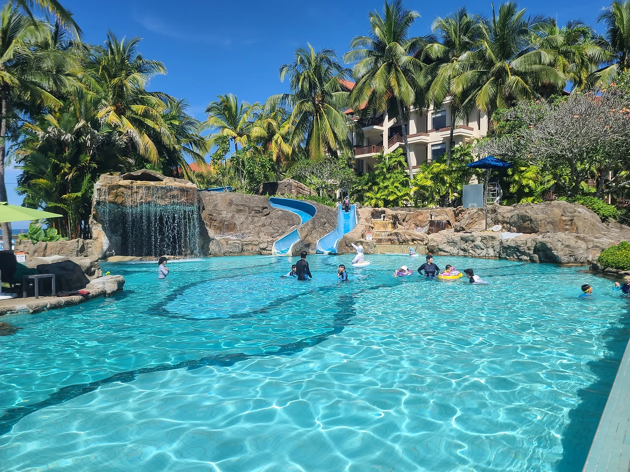 호텔에서 1박 후 둘째 날 리조트로 이동했다. 엄청난 규모에 정말 깜짝 놀랐다. 비용을 조금 저렴하게 해서 일 수도 있지만 수영장이 있는 곳에서 방까지 거리도 상당하였다. 일찍 도착했기에 짐을 맡기고 화장실에서 옷을 갈아입힌 뒤 아이들은 바로 수영을 했다. 수영장을 보자마자 체크인하는 동안 빨리 물에 들어가고 싶다며 흥분한 첫째 때문에 같이 서둘렀던 엄마, 아빠다. 이 리조트에는 수영장이 6개 있다고 했다. 첫날은 주로 메인 수영장에서 놀고 다음날부터 좀 걸어서 다른 수영장에서도 놀았다. 오전에 관광을 하고 와서도 물놀이를 하며 지치지 않는 아이들이 신기하기만 했다. 3년 전에는 무서워서 물에 들어가는 데 오래 걸렸던 둘째가 밤까지 물에서 노는 것도 엄마는 감탄의 연속이었다.