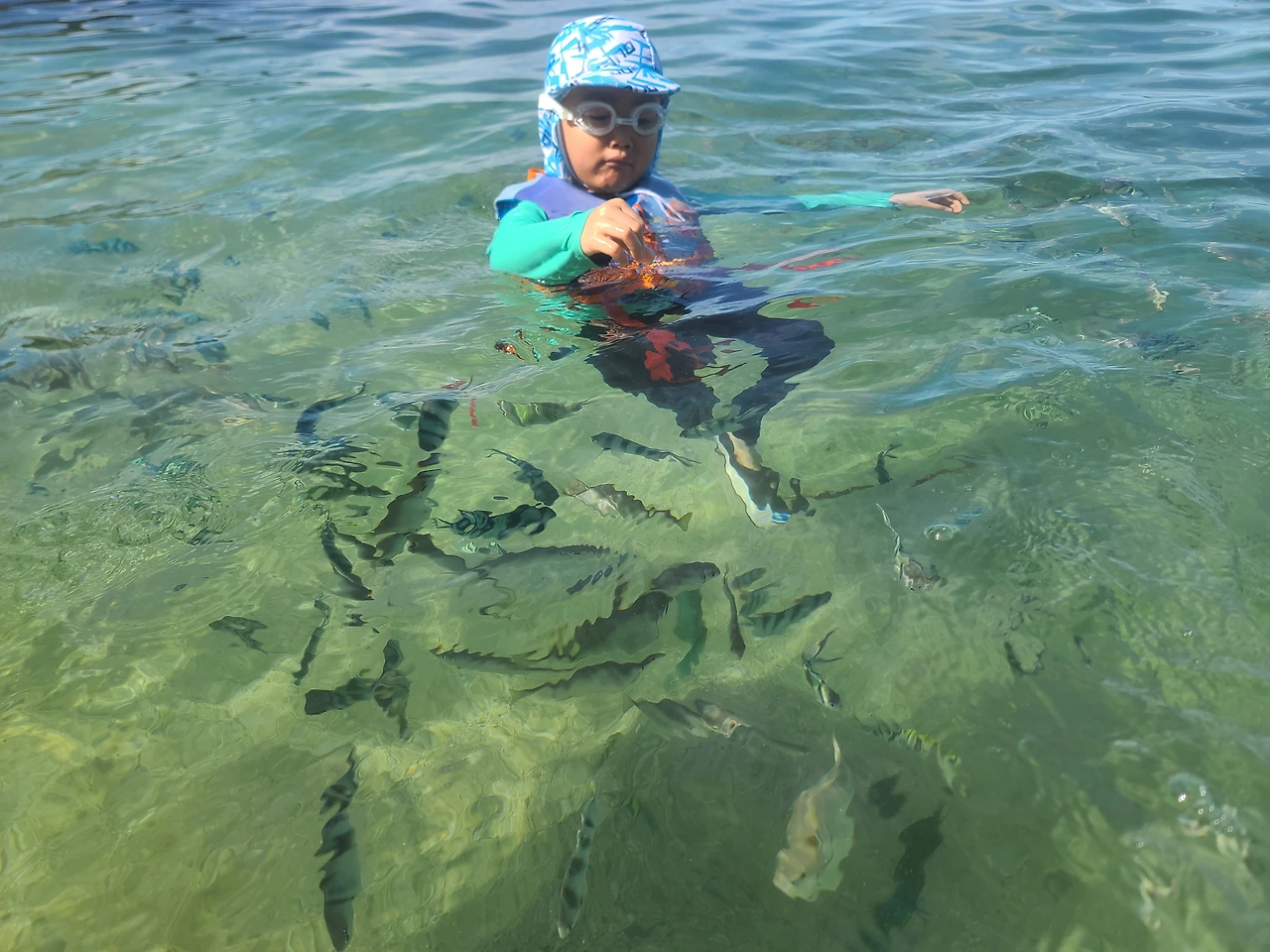 몇 년 전에 세부에 갔을 때는 리조트 앞 비치가 상당히 넓었는데 이곳은 그렇지는 않았다. 그런데 신기하게 섬투어에서 보았던 물고기보다 리조트 앞바다에 물고기가 더 많았다. 스노클링도 무서워서 하지 못하는 나는 그저 신기하기만 했다. 아이들은 물고기를 만져봤다, 물고기가 나한테 온다며 너무 즐거워하였다. 이런 게 바로 동남아의 매력이구나.. 싱글일 때 친구들과 여행하면 아침부터 저녁까지 빽빽하게 계획을 짜던 나는 이제 이렇게 쉬면서 즐길 수 있는 여행을 할 수 있게 되었다. 나는 덥고 물놀이를 즐기지 않지만 아이가 노는 것만 보아도 행복하고 그 자체가 힐링이었다.
