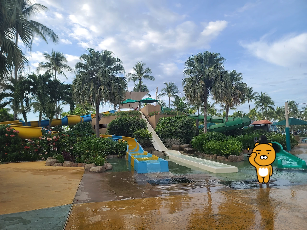 마젤란은 수영장이 여러 개였다면 샹그릴라는 종류는 많지 않았지만 놀이기구가 있어 아이들이 더 재미있게 놀았다. 슬라이드를 특히 좋아해서 여러 번 탔다. 아이에게 물어봐도 샹그릴라가 더 재미있다고 하였다. 또 하루 한 번 물풍선 터뜨리기 도 있어해 보았다. 수영장 깊은 곳으로 가면 바다풍경을 볼 수 있어 분위기도 참 좋았다.