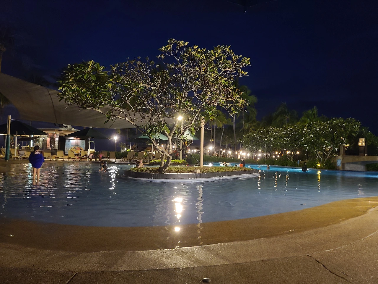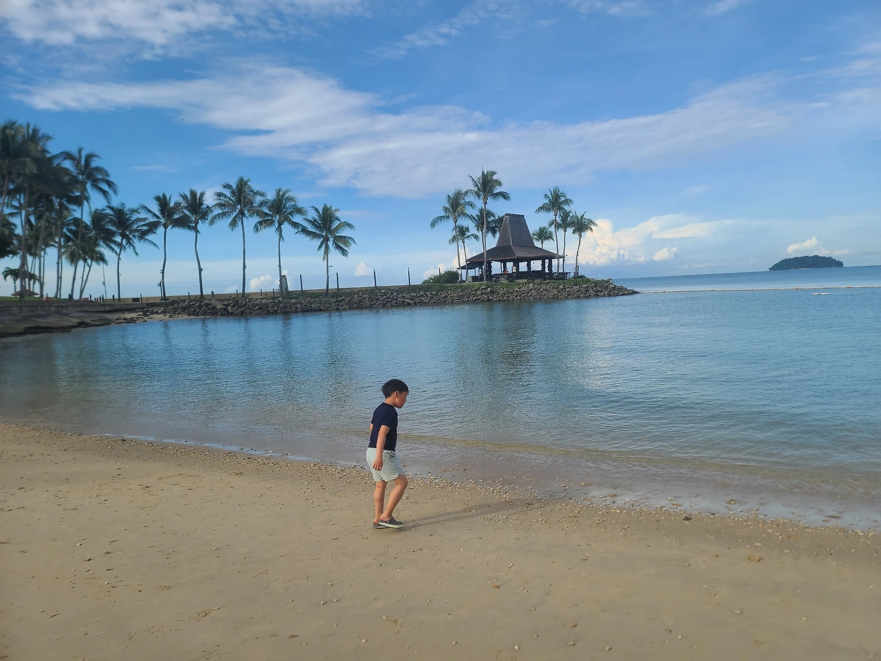 프라이빗 비치도 좀 달랐다. 마젤란은 규모가 작았지만 물고기를 많이 접할 수 있었는데 샹그릴라는 비치가 좀 넓었다. 우리는 잠깐 밖에 놀지 않았지만 게가 눈앞에 여럿 보여서 아이들이 한참 놀았고 풍경이 멋져서 어디서 찍어도 잘 나왔다. 특히 선셋이 너무 예뻐 저녁에 비가 왔어도 기억에 남는다. 또 마젤라는 오후 7시까지만 수영장을 이용했는데 샹그릴라는 밤까지 이용 가능하여 야간 수영의 재미도 느낄 수 있었다.