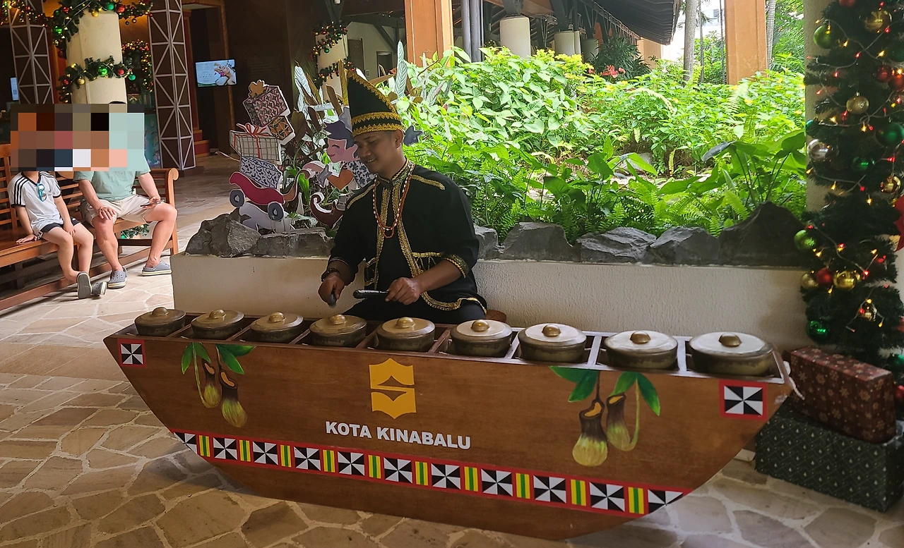 입구에서 다양한 즐길거리도 한 층 기분을 업 시켜주었다. 크리스마스 분위기, 산타할아버지와 포토타임, 전통 악기 연주 등 말이다. 그랩을 기다리면서는 아이에게 직접 연주를 해 볼 기회도 주셨다.