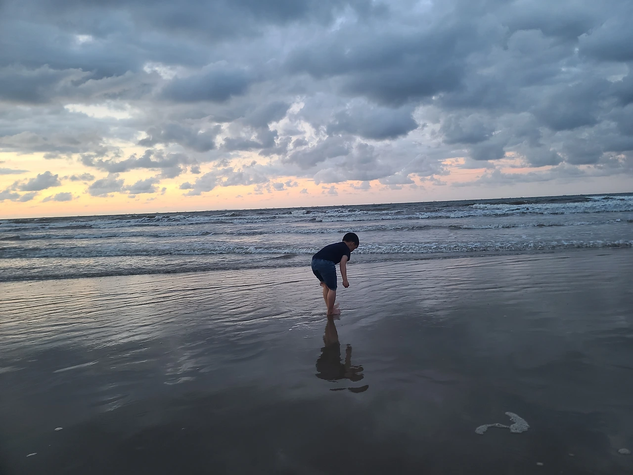 저녁 식사 후 선셋을 보러 바다로 갔다. 안타깝게도 날씨가 흐려 선셋을 볼 수는 없었다. 그래도 아이들은 보트에서 내리자마자 신이 났다. 역시 자연은 최고의 놀잇감이다. 선셋을 못 봐서 아쉬운 건 엄마, 아빠일 뿐.. 아이들은 무엇이라도 상관이 없다. 게를 잡았다며 신난 첫째, 첨벙첨벙 물놀이하던 둘째.. 시간 가는 줄 모르고 바다에서 놀았다. 그렇게 바다에서 놀며 어두워지기를 기다렸다.