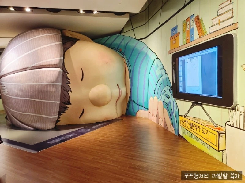 입장료가 있지만 다둥이는 무료라 우리는 무료로 시설들을 이용하고 있다. 우리가 가장 많이 가는 곳은 로보파크와 자연생태공원, 만화박물관이다. 주로 가깝기에 주말 중 하루 멀리 다녀왔다면 하루는 가까운 곳으로 가는 편이다. 로보파크는 키즈카페처럼 놀이시설이 있어 아이들이 언제 가도 잘 논다. 오전에 집에서 나름 시간을 보내고 오후에 가볍게 다녀오는 편이다. 자연생태공원은 계절마다 가는 편이라고 할 수 있다. 여기는 정말 잘 되어 있다. 실내 식물원, 자연생태박물관, 수목원을 한 번에 볼 수 있어 하루 종일 시간을 보내도 좋은 곳이다. 사람들이 잘 알지 못하지만 수목원 끝까지 가면 작은 숲놀이터도 있다. 봄에는 튤립축제가 특히 유명하다. 만화박물관은 가까운데 1년에 1~2번 정도 방문한다. 상설전시 외에 1층에서 특별전시를 해서 갈 때마다 새로운 전시를 볼 수가 있다. 또 영화관, 도서관이 있어서 모두 이용하면 여기도 하루는 거뜬하다.