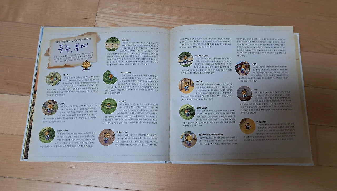 “백제”가 무엇인지 모를 때부터 백제라는 말에 익숙한 아이들이었다. 친할머니댁이 공주이다 보니 주변이 온통 백제에 대한 것이기 때문이었다. 게다가 친정 부모님께서 은퇴하시기 전에 부여에 밭을 마련하셨는데 덕분에 부여도 자주 가게 되었다. 지난주 우연히 도서관에서 “너, 공주 부여에 있니?”라는 책을 발견하고 빌려와 어제 읽어주었다. 읽어주다 보니 책에 있는 거의 모든 장소를 가 보아서 아이가 집중하며 들었다. 비록 얼마 전에 간 것이 아니고 2~3년에 걸쳐서 한 장소씩 간 것인데도 아이는 다 기억하고 있었다. 그리고 어디서 백제, 무령왕릉, 웅진, 사비 등의 이야기가 나오면 귀가 쫑긋해지는 아이들이다. 주로 백제의 장소들을 우연히 많이 다니게 되다 보니 나도 모르게 “이러다 백제 박사가 되겠어~.” 란 말이 나오게 된다.