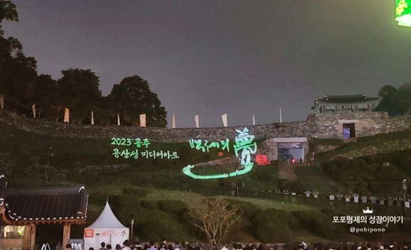 백제의 문화와 더 친해지게 된 계기는 매년 이루어지는 <백제문화제>가 있다. 우리는 주로 백제문화제 할 때 시댁에 방문해서 매년 보는 편이다. 규모가 상당해서 꽤 볼 것들이 많다. 거리에서 무령왕 등 역사적인 인물로 분장한 학생들이 퍼레이드를 하기도 한다. 남편도 학창 시절 퍼레이드에 참가했다고 한다. 무엇보다 가장 기억에 남는 건 미디어아트이다. 공주에서는 공산성에서, 부여에서는 부소산성에서 이루어진다. 미디어아트에서도 역사적인 설명이 나와 백제의 문화에 대해 깊이 알 수가 있다. 또, 공주에서는 금강신관공원, 부여에서는 구드래 나루터에서 다양한 체험을 할 수가 있다. 무료로 아이들이 마술쇼도 보고 소방체험, 각종 미술, 놀이 등을 이용할 수가 있다. 그러다 보면 하루가 금방 간다.