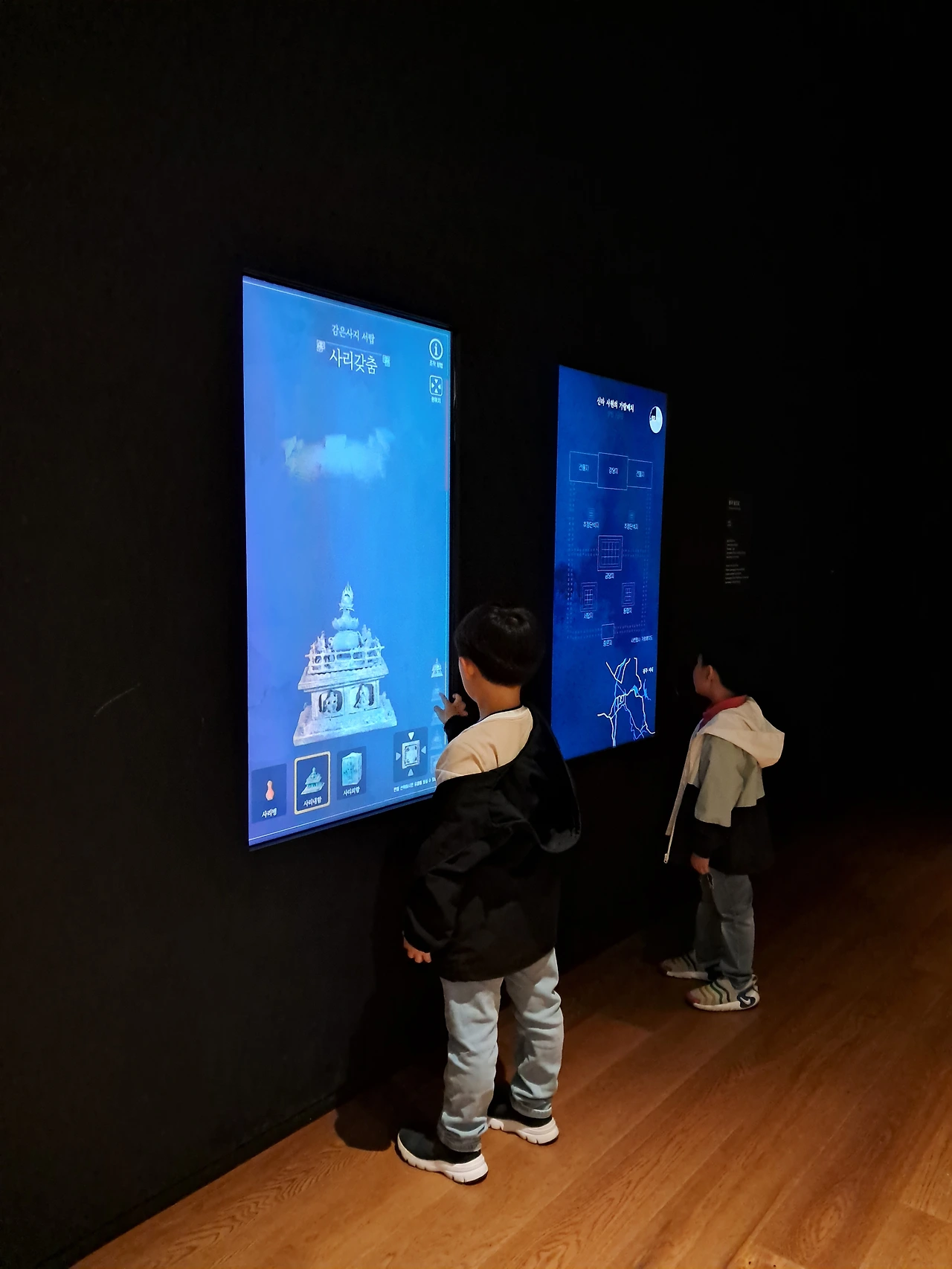 경주의 마지막 코스는 불국사였다. 사실 불국사와 석굴암은 아이들이 재미도 없을 것 같고 힘들 것 같아 가지 않으려고 했다. 그런데 첫째가 석가탑과 다보탑을 꼭 보고 싶다고 하는 것이다. 그래서 가게 되었다. 탑들과 불국사를 보고 나오려는데 불국사 박물관이 있는 것이다. 역시 지나치지 못하고 들러서 왔다. 여기서는 석가탑을 분해해서 다시 조립하는 영상을 보여주었는데 이것이 의미 있었다.