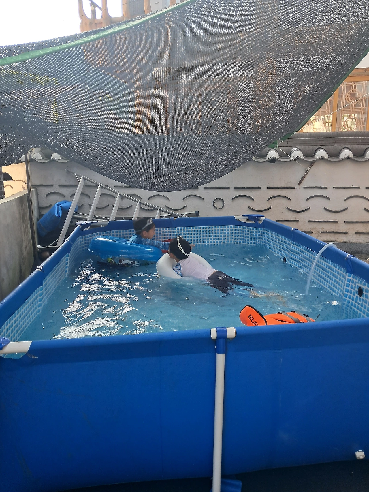 미니수영장이 있어 방학기간 동안 내내 물놀이도 실컷 했다. 둘 다 물안경 끼고 잠수도 잘하는 걸 보니 수영 못 보냈다고 걱정할 필요가 없었다.