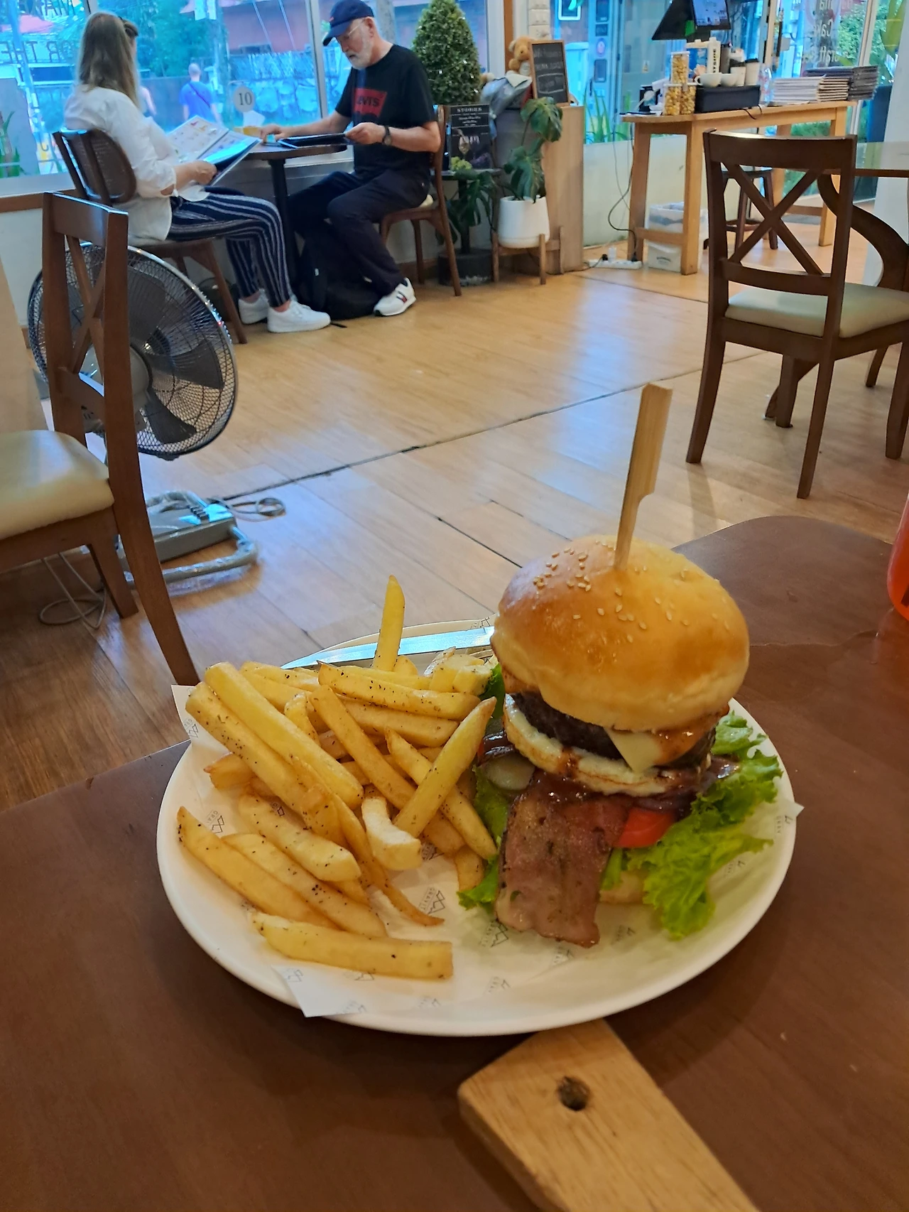 립과 햄버거를 주문하고 “남은 돈 다 쓰고 가자!”는 마음으로 푸짐하게 먹었다.