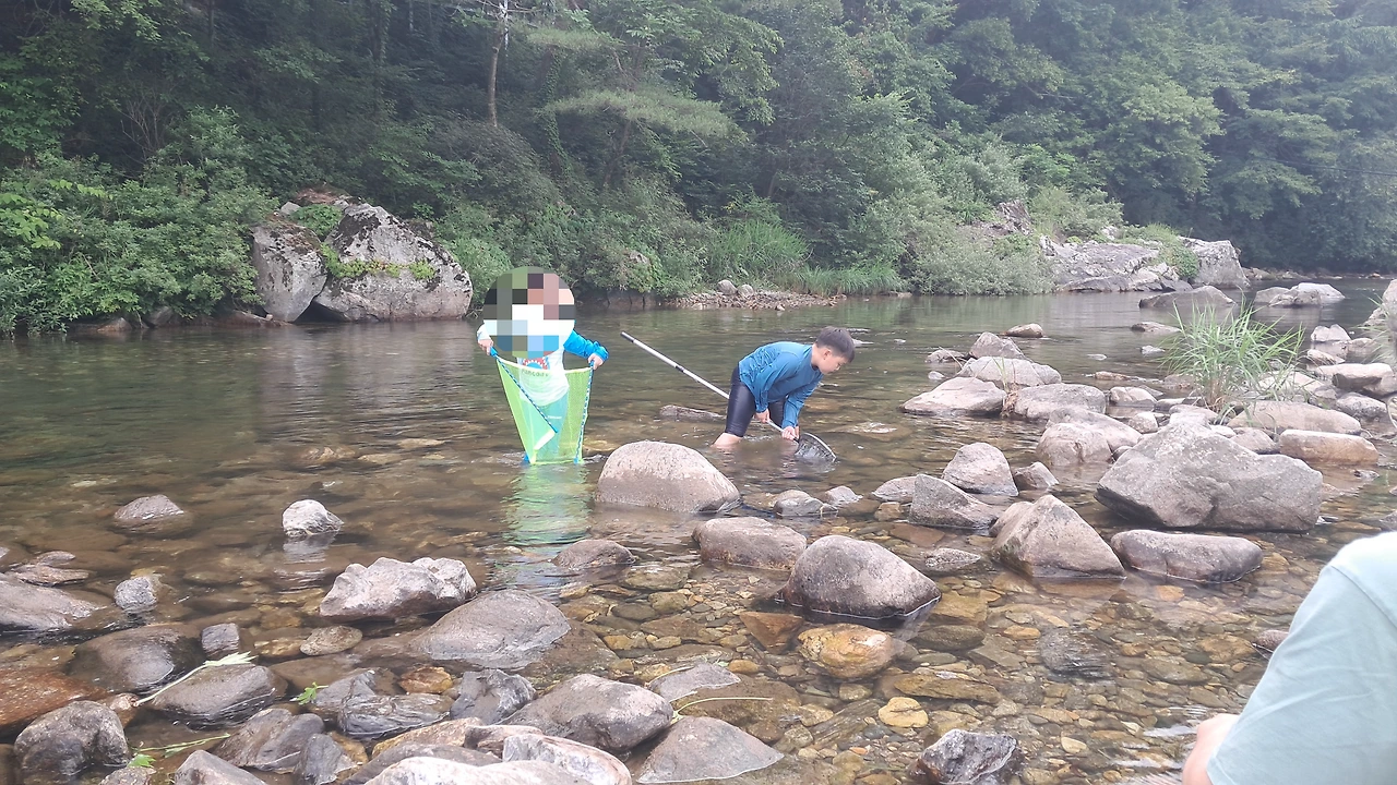 작고 얕은 물이 흐르는 곳이었지만 아이들은 2시간 넘게 신나게 놀았다.